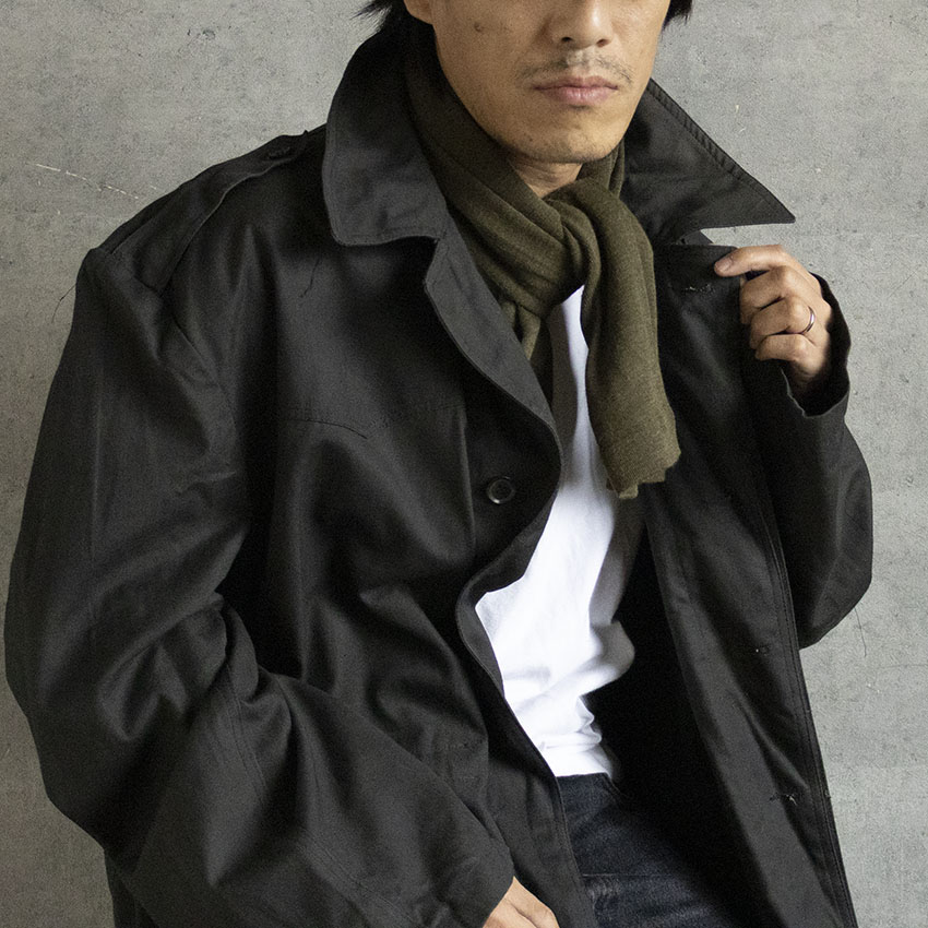 チェコ軍ウールスカーフです。長さがない分、1重でも保温性を高める為に筒状になっています。