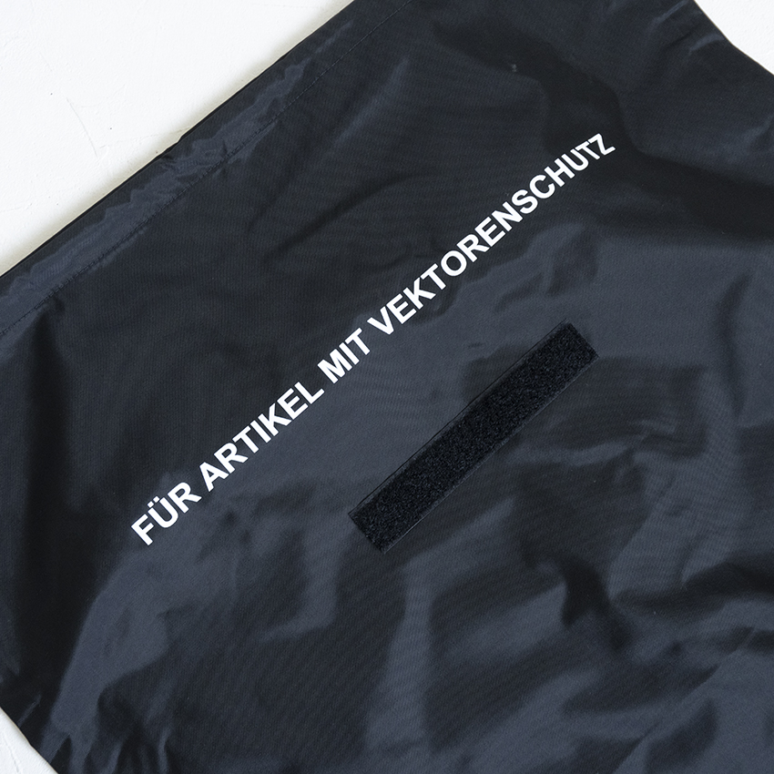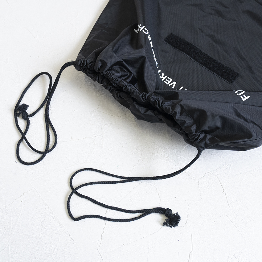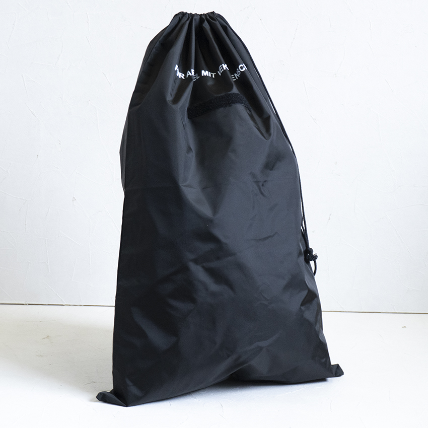 内側にコーティングが施されたポリエステル素材。フロントにはネームワッペン用のマジックテープが付いています。