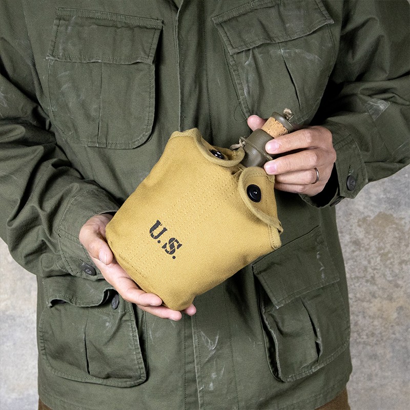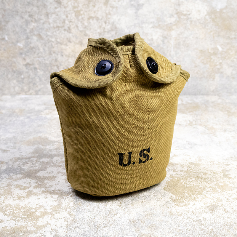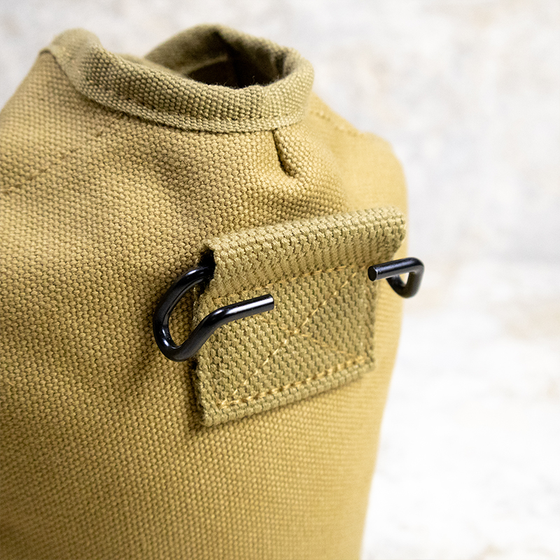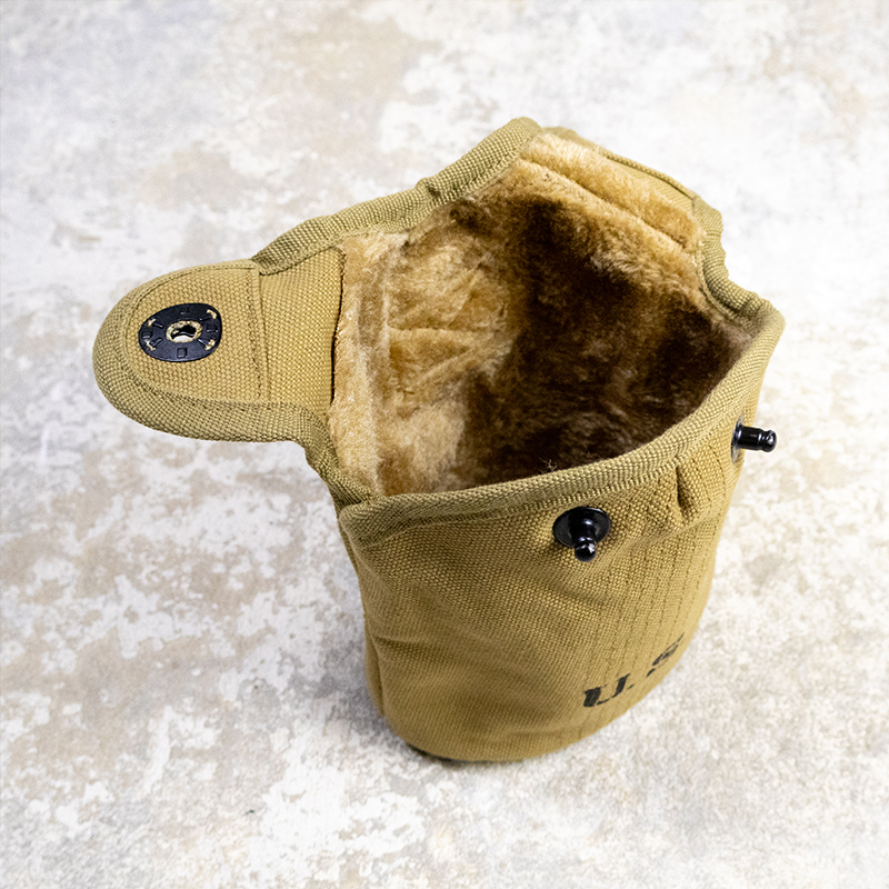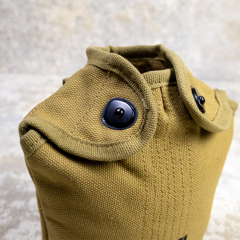 「M1910カンティーンカバーは第一次世界大戦時に採用され、オリーブカラーに変更こそありましたが、70年代まで使用されました。」