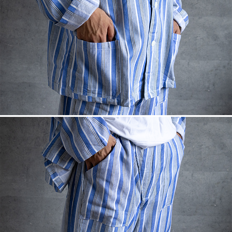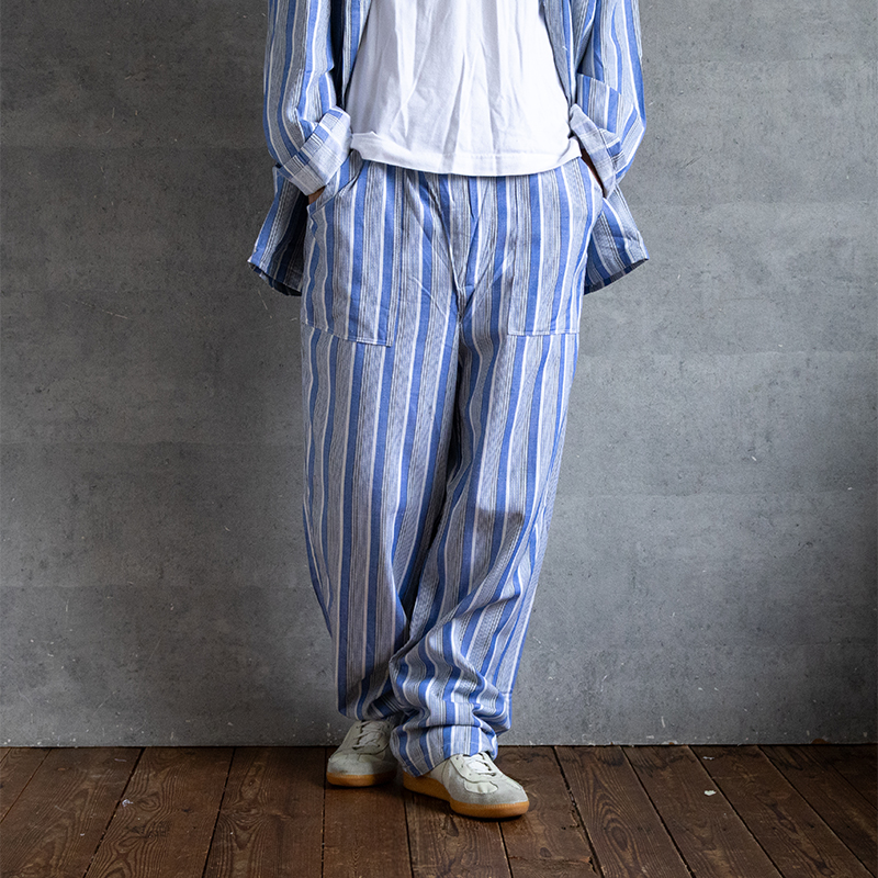 柔らかで上品なブルーのストライプは、様々なアイテムに合わせることができます。