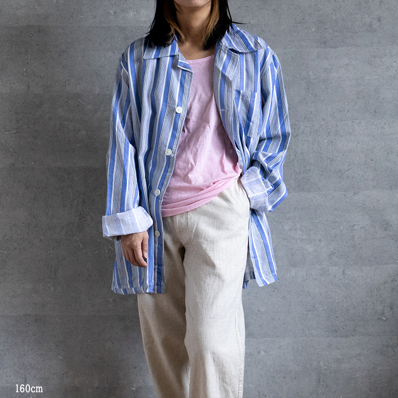 開襟デザインとゆったりとしたシルエットが相まって、リラックス感のある一着に仕上がっています。