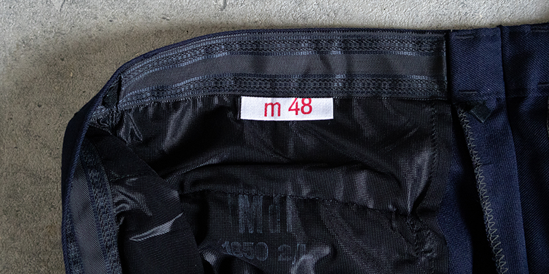 ウエスト後ろ側にはゴムバンドが通っており、内側の左右のボタンで留めて多少絞ることができます。