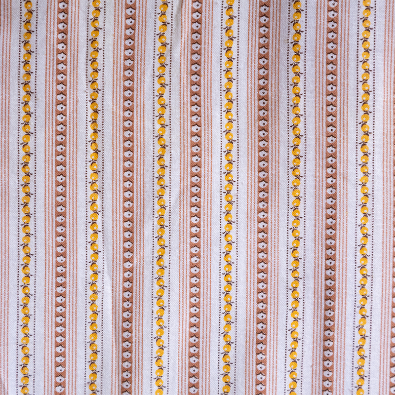 柔らかなオレンジとイエローのストライプは、温かみのある印象を与えます。