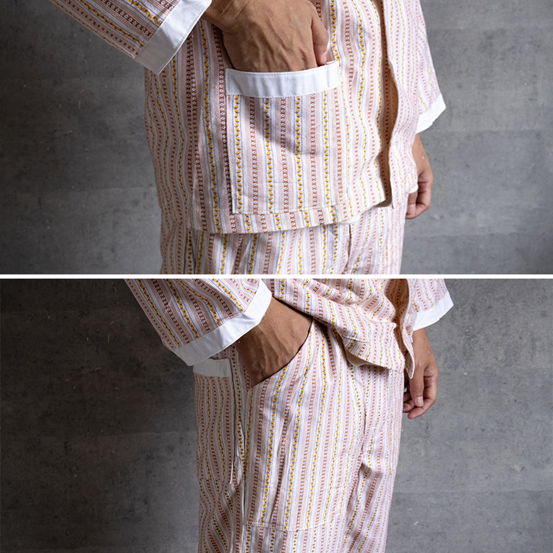 開襟デザインとゆったりとしたシルエットが相まって、リラックス感のある一着に仕上がっています。