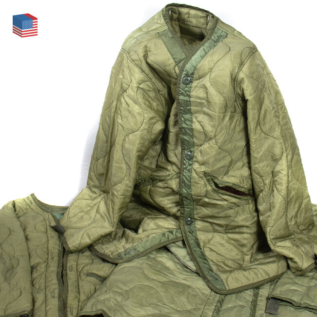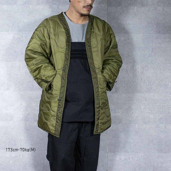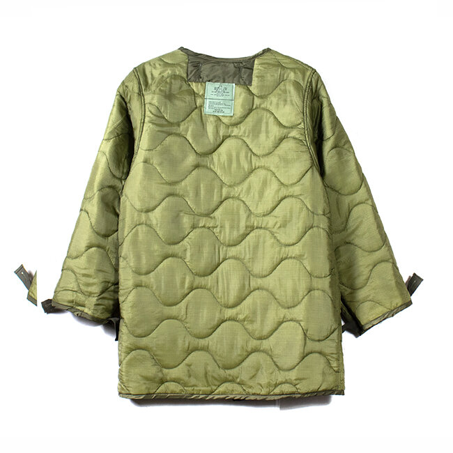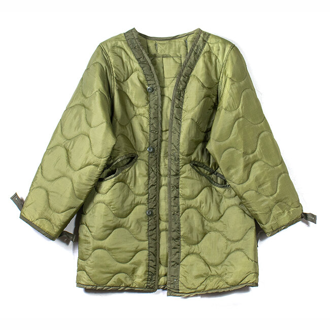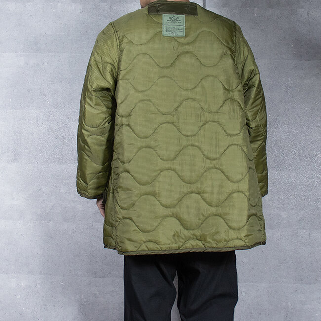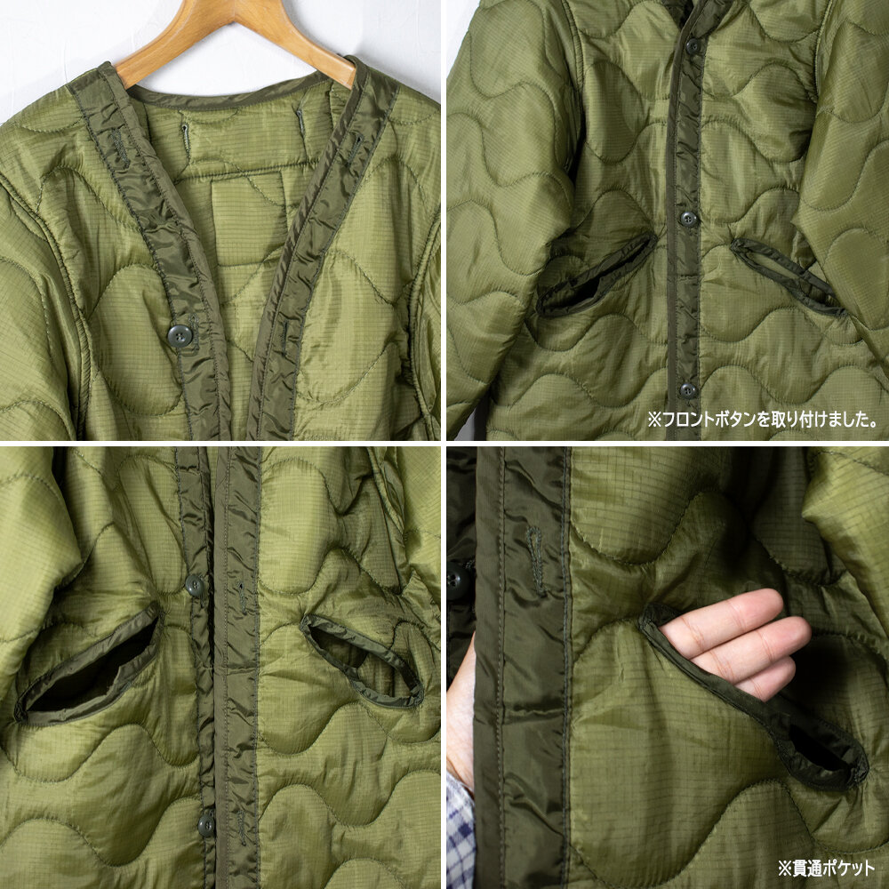 アメリカ軍ではお馴染みのジャケットライナーよりも着丈の長さとポケットにあたる部分が貫通になっているのが特徴です。