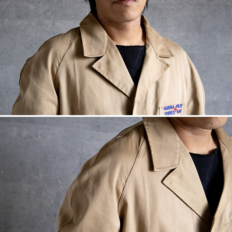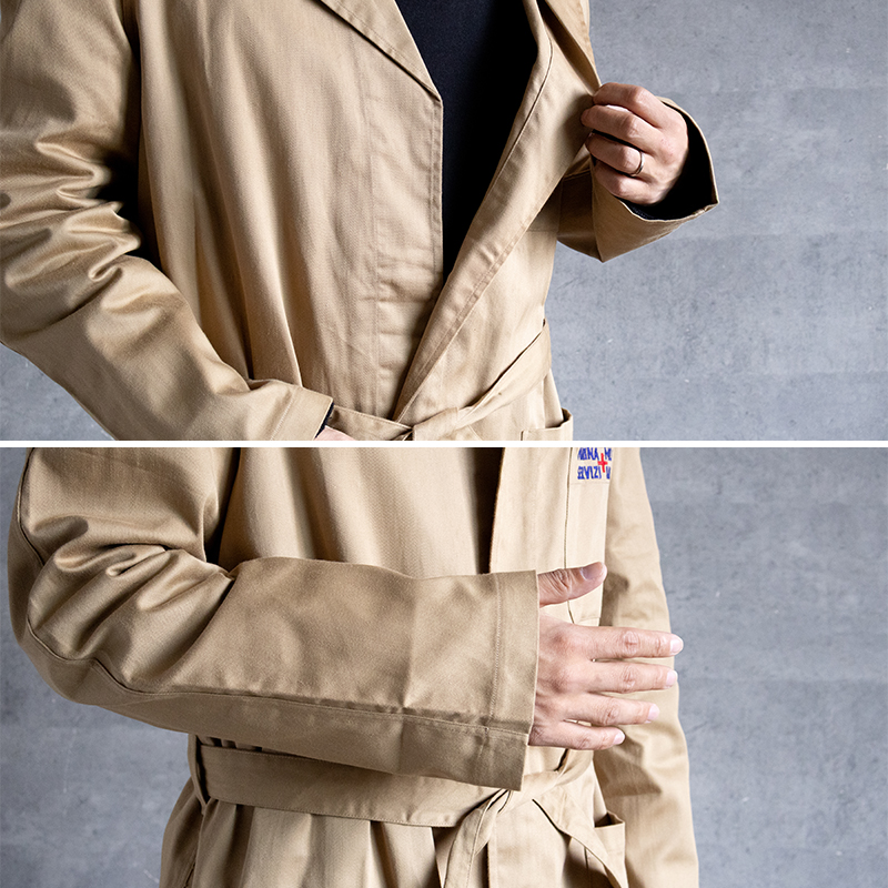 色味、襟元、ウエストベルトのデザインからラフなトレンチコートのような感覚で、気軽に羽織れる一着です。