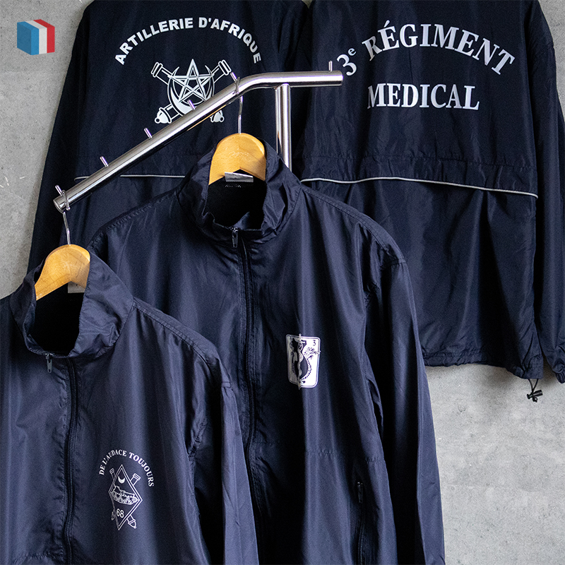 フランス軍のトレーニングジャケット。 薄手のポリエステル生地で動きやすく軽い着心地。