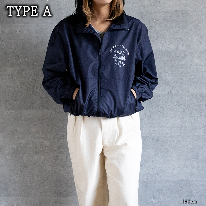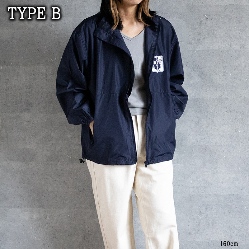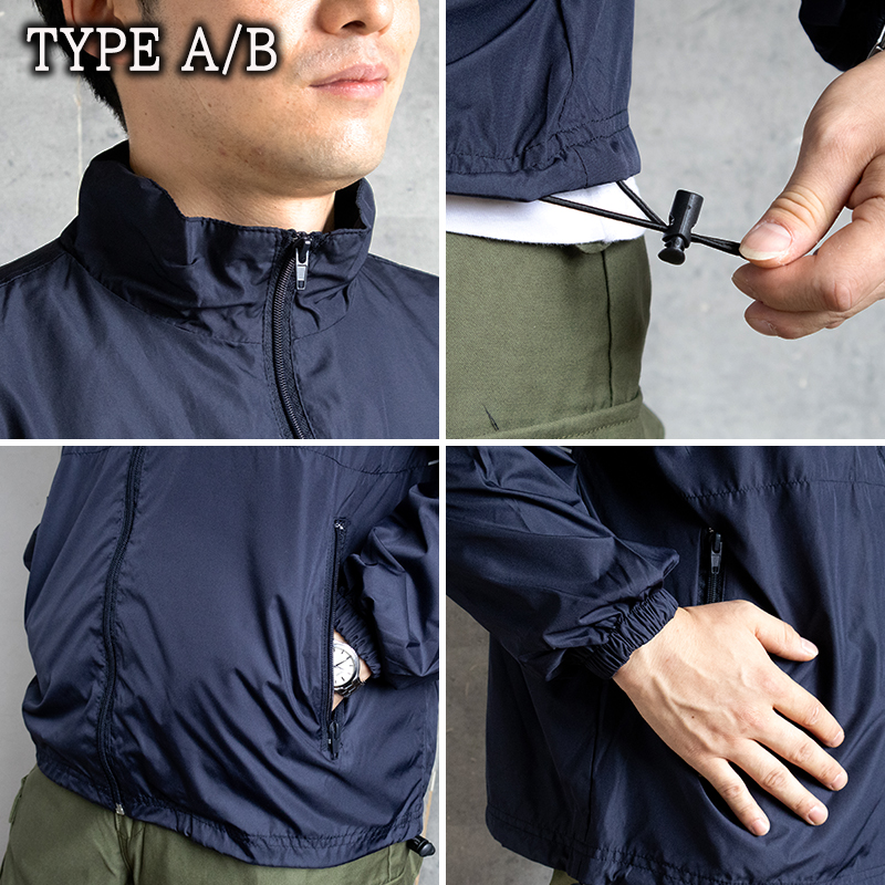 フロント開閉と2つのポケットはジッパー仕様です。 裾はドローコードで絞ることができます。