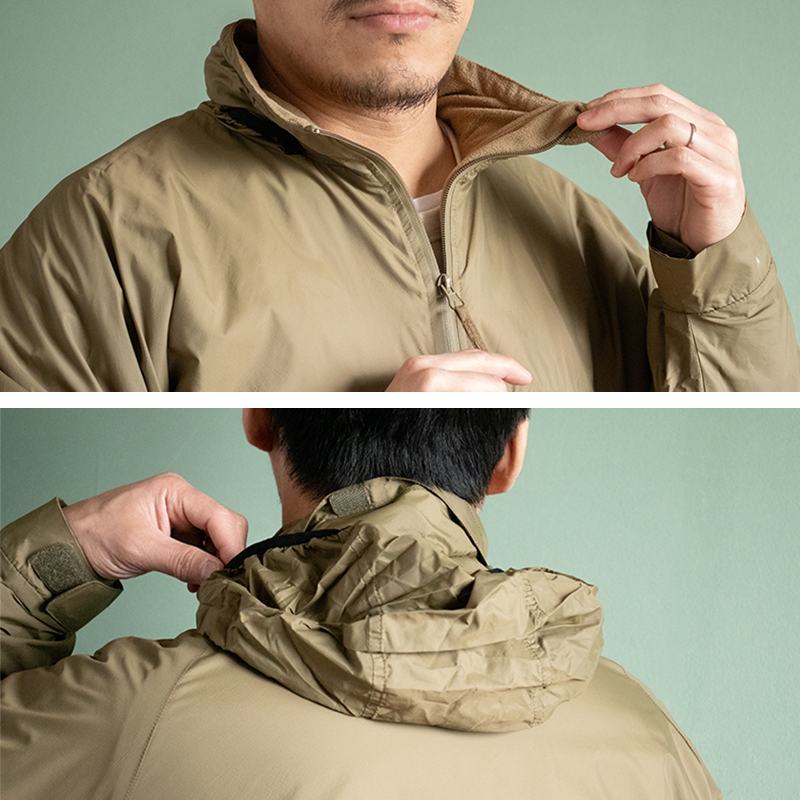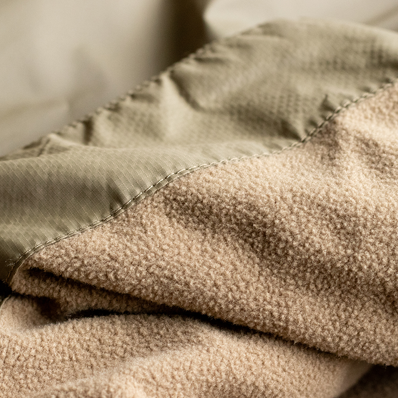 薄手のナイロン素材と保温性のあるフリース素材を使った軽量で着心地の良いジャケットです。
