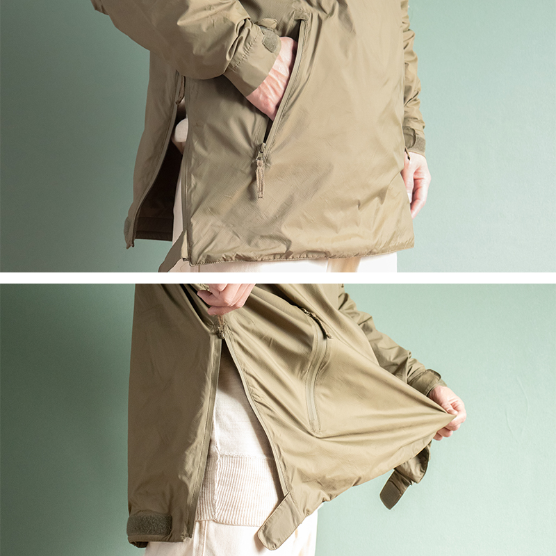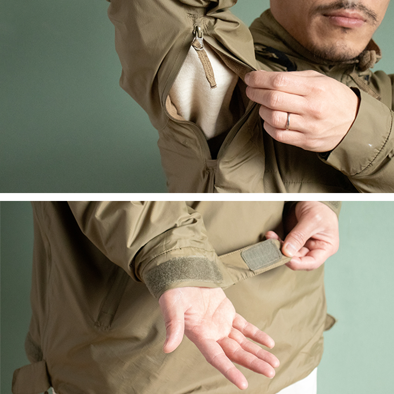 両サイドの脇、裾にはベンチレーションジッパーが付いております。
