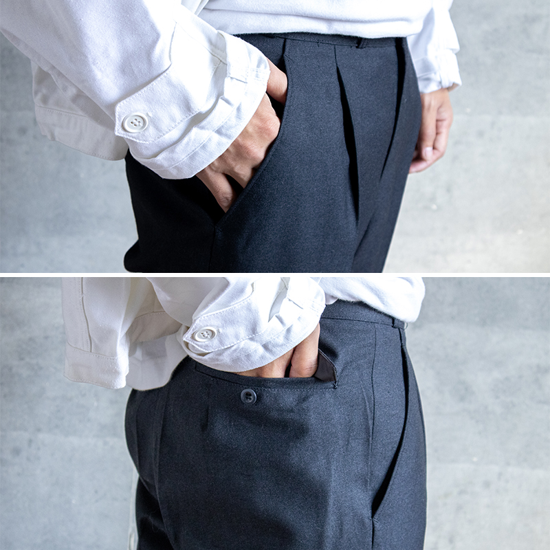 タック入りのデザインで、美しいシルエットが際立ちます。