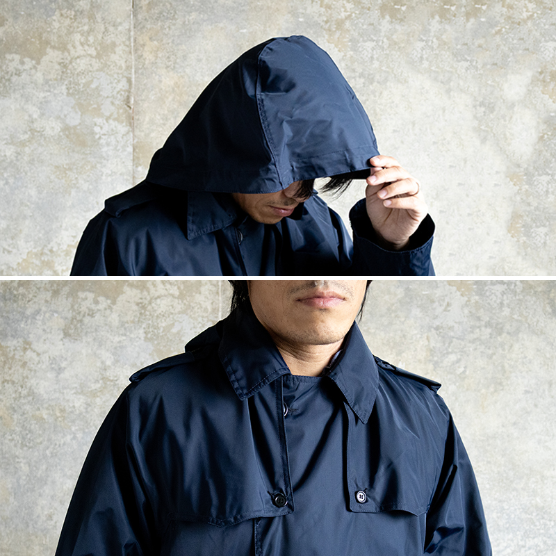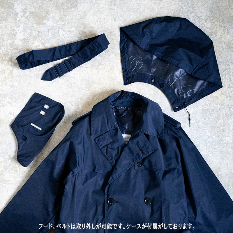 付属のフードはボタンで取り外し可能です。 ウエストベルトも取り外し可能です。