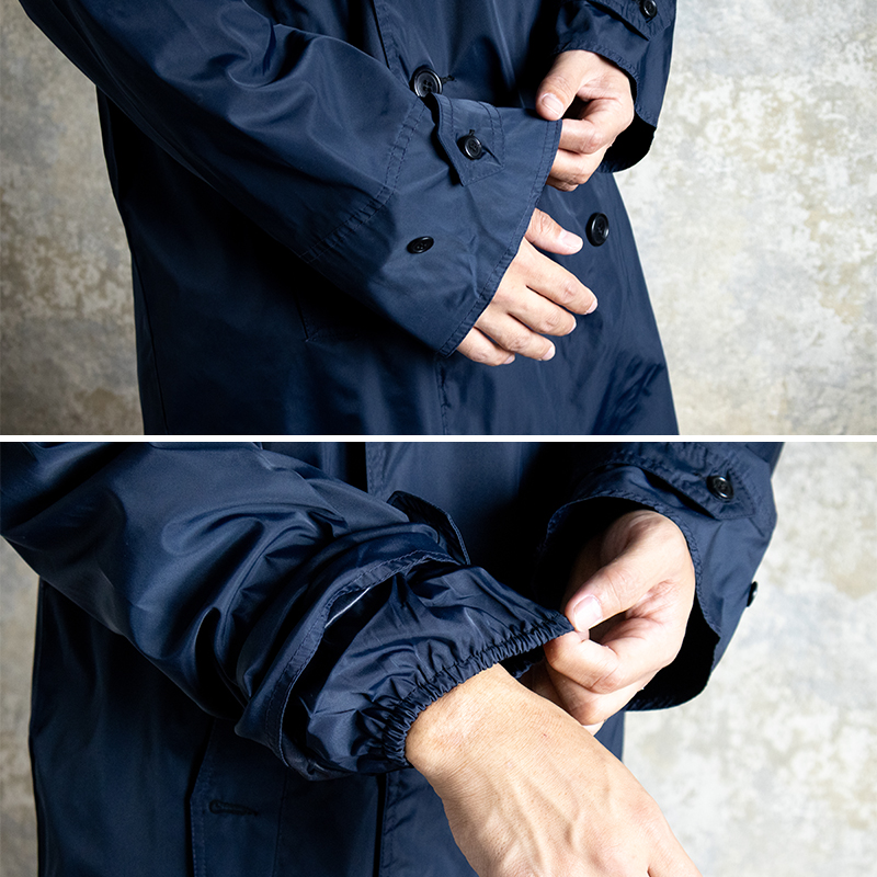 袖口の内側にはゴムで絞られた生地が付いており雨風の侵入を防ぎます。