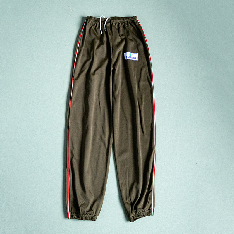 オリーブブラウンのような色味に、イタリア国旗のラインがアクセントとなっています。