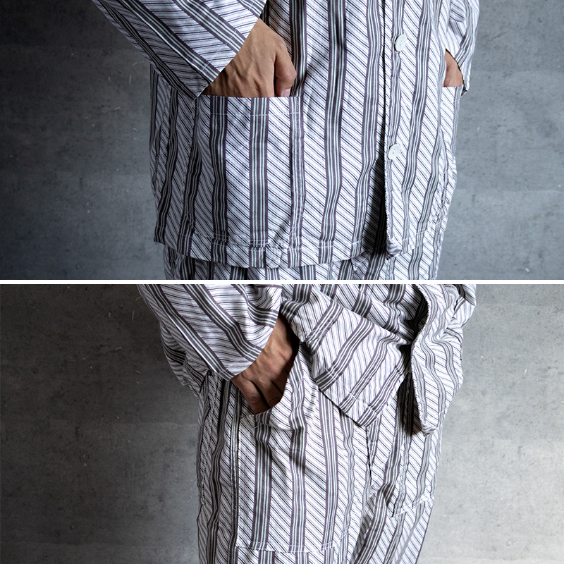 シャツとパンツ、それぞれ単体でも着られる着回し力の高いセットアップです。