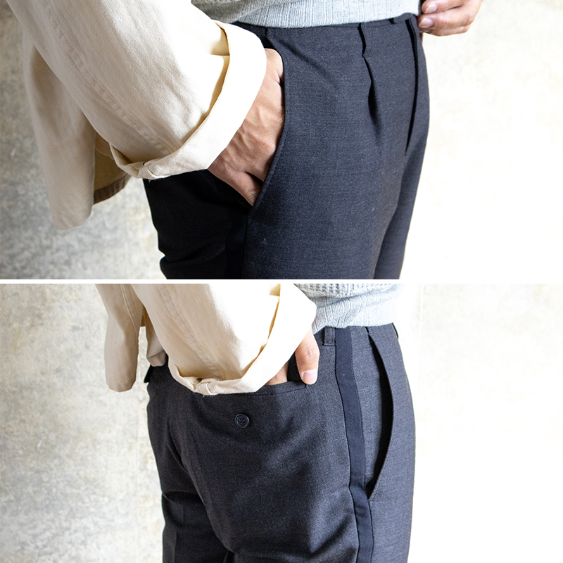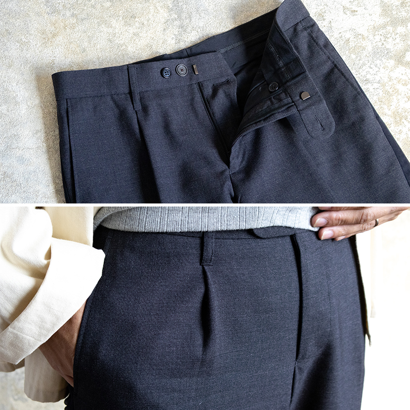 センタープレス入りで、きれいめからカジュアルなスタイリングまで幅広く対応します。