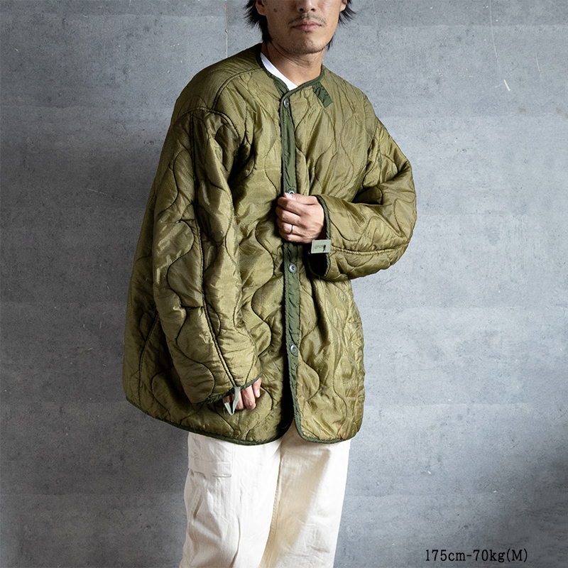 昨今の通常ではインナーとして使用していたライナーをアウターとして着用するスタイルを確立した代名詞といえるライナーです。