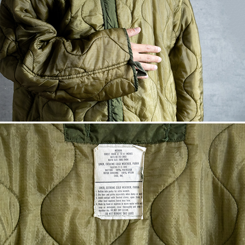 アメリカ軍M-65フィールドパーカー用キルティングライナー。