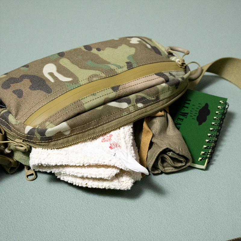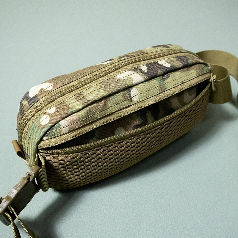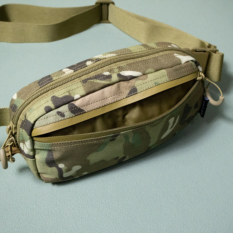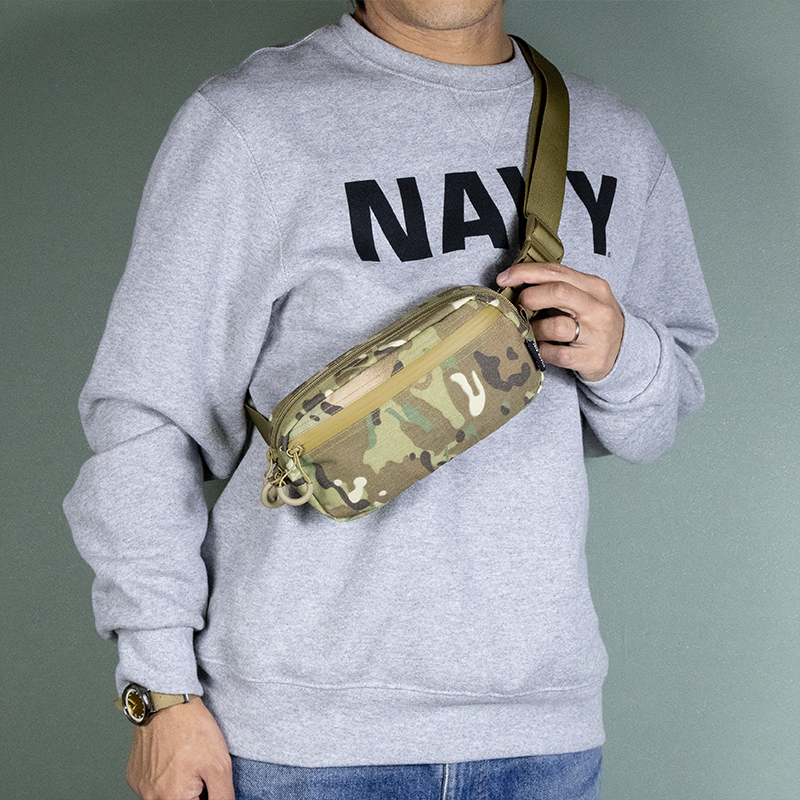小ぶりながらも財布やスマートフォン、鍵などの必需品をしっかり収納でき、ちょっとした外出や、アウトドアシーンにも最適です。