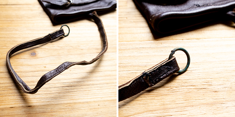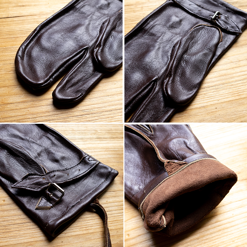 ブラウンレザーで外側は光沢感があり、内側は手触りの良いスウェードとなっています。
