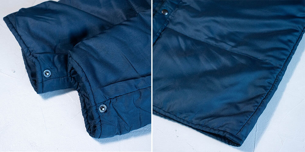 単体でも着用出来る出来るスナップボタンが備わっています。アウターからインナーまで幅広く利用して頂けます。