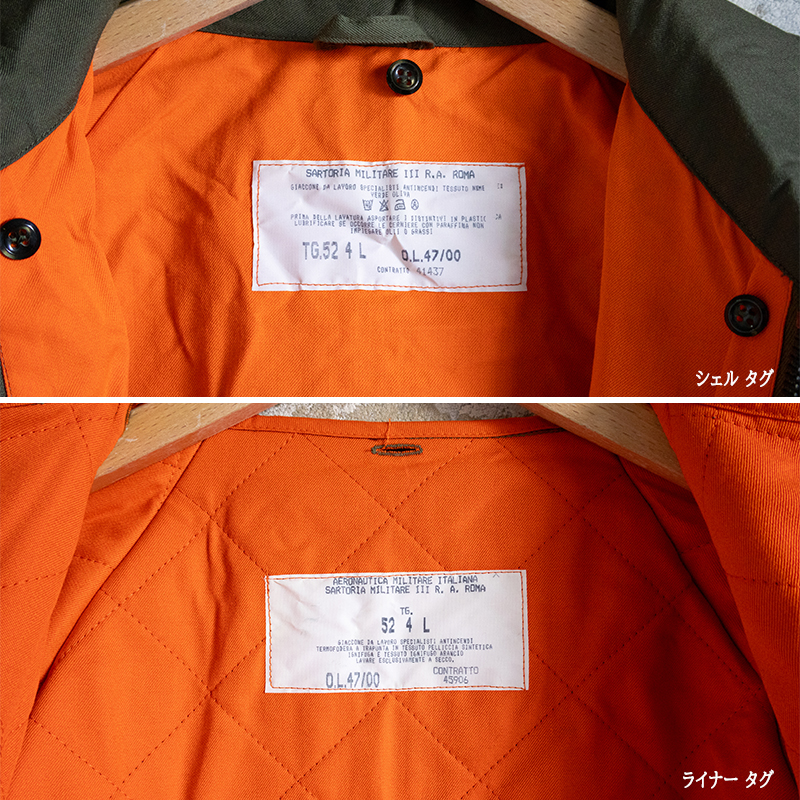 イタリア空軍実物のライナー付きショートコートです。 肩から腕のラインが丸みを帯びたラグランスリーブ仕様。