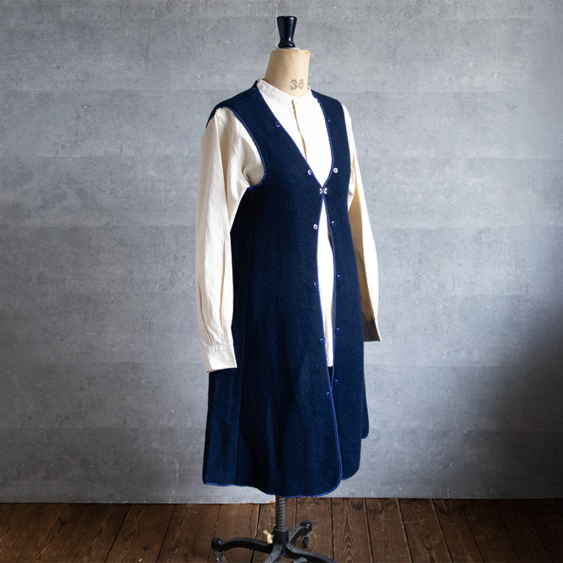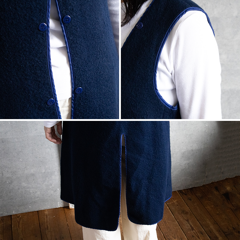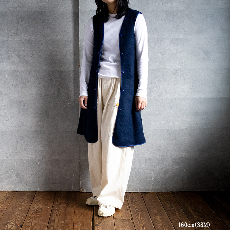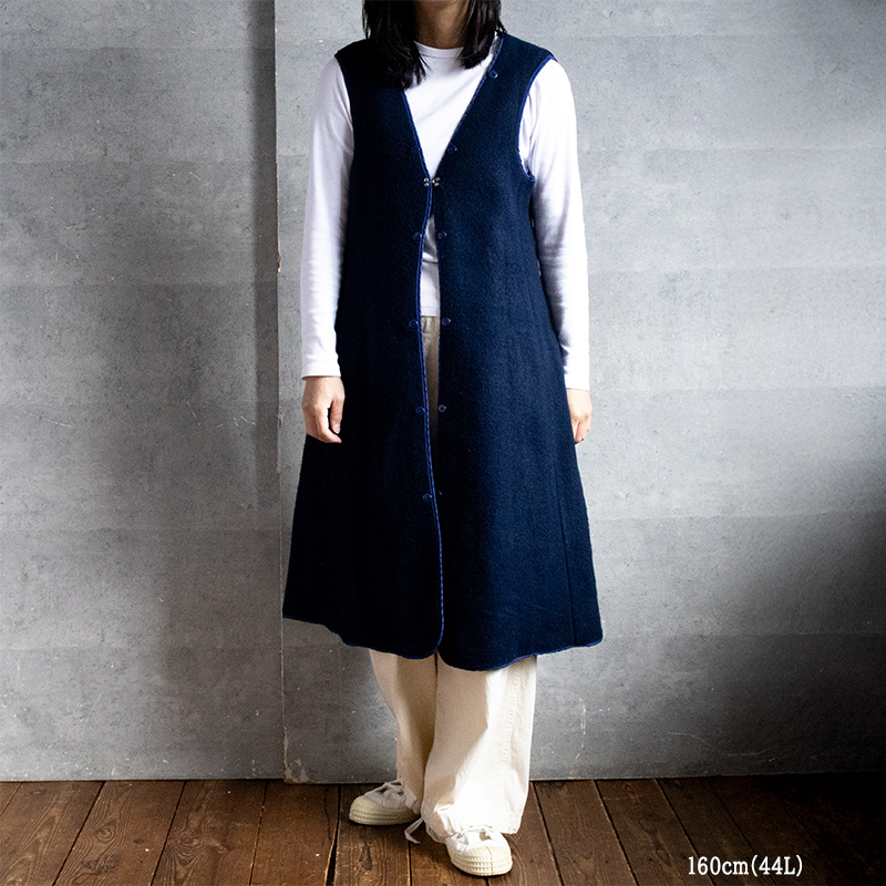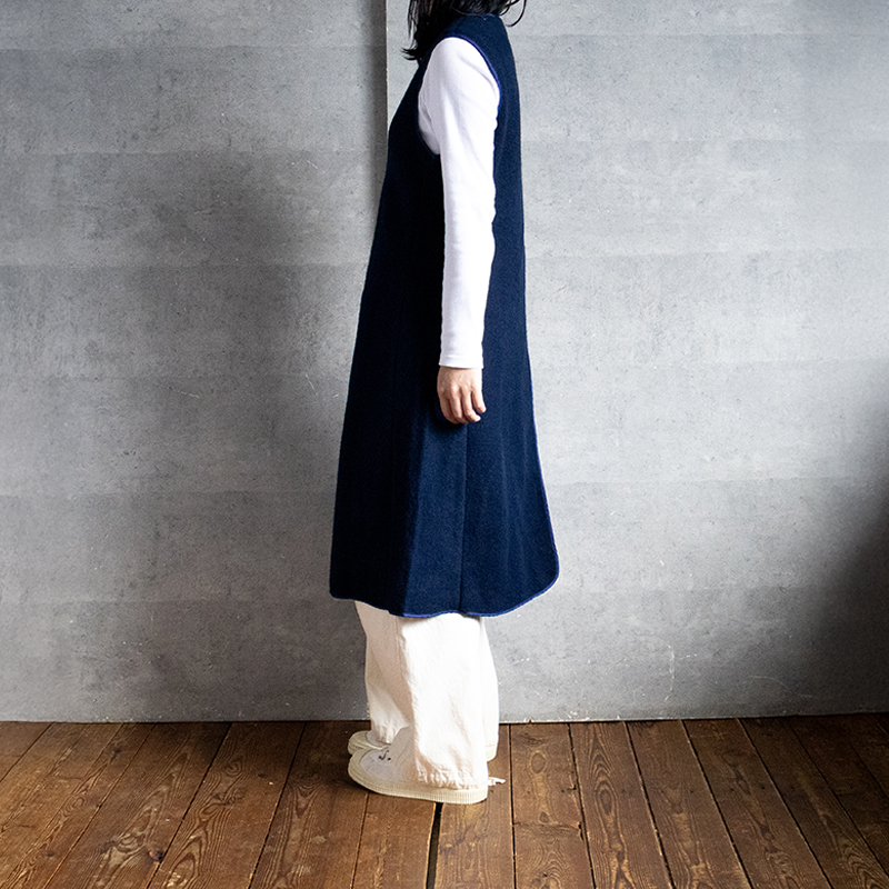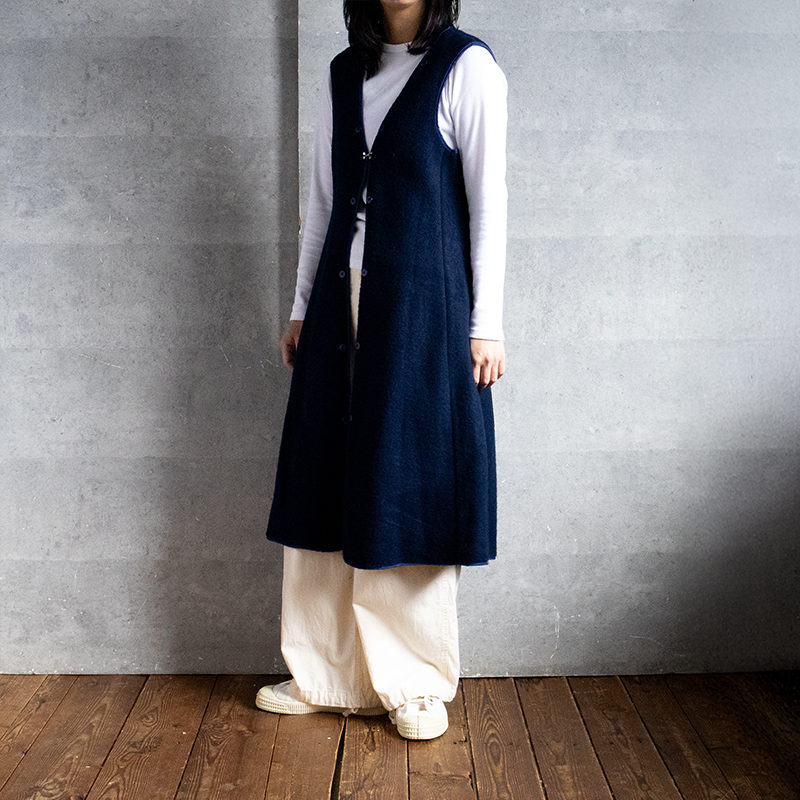 軽い着心地でロングベストとしてさらっと羽織ることができます。