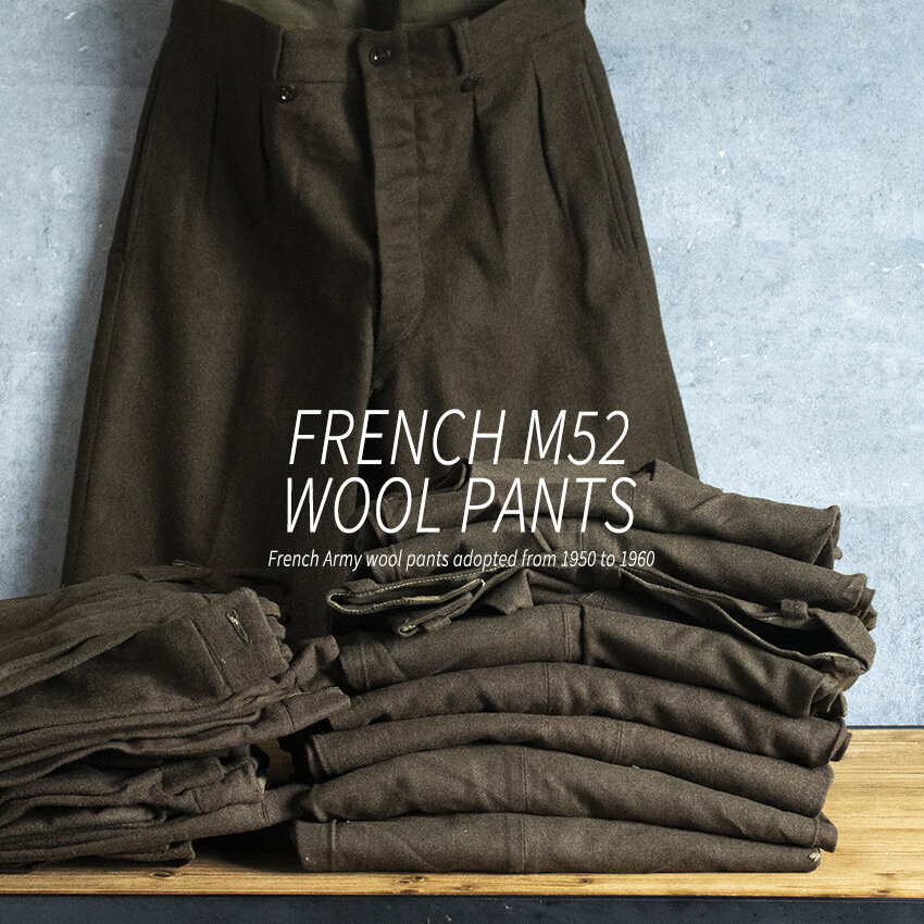 フランス軍にて50-60年代頃に採用されていた名品「M52チノトラウザー」のウール生地になります。
