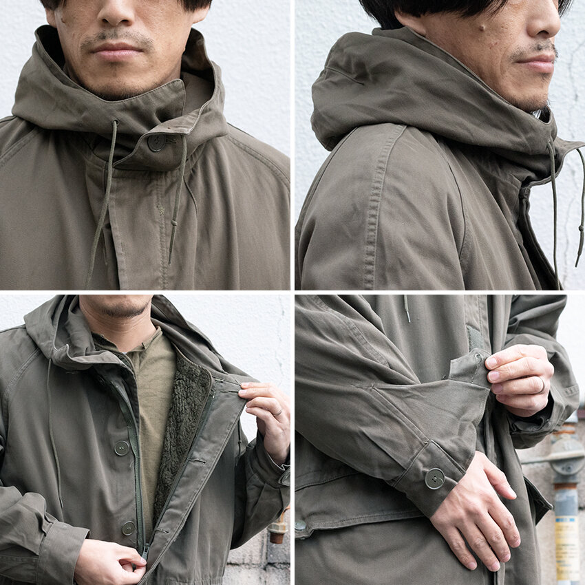 アメリカ軍M51フィールドパーカーとは違い、フレンチミリタリーならではの全体的に落ち着いたデザインのモッズコートです。