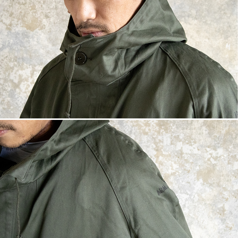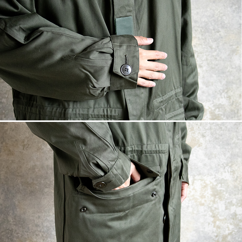 アメリカ軍M51フィールドパーカーとは違い、フレンチミリタリーならではの全体的に落ち着いたデザインのモッズコートです。