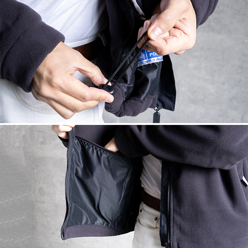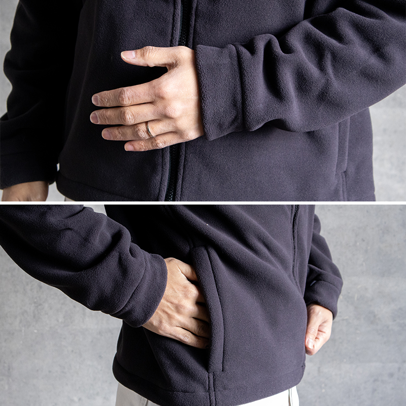 米軍規格でもよくみかけられるPolartec社のフリース生地を採用しており、高い防寒性があります。