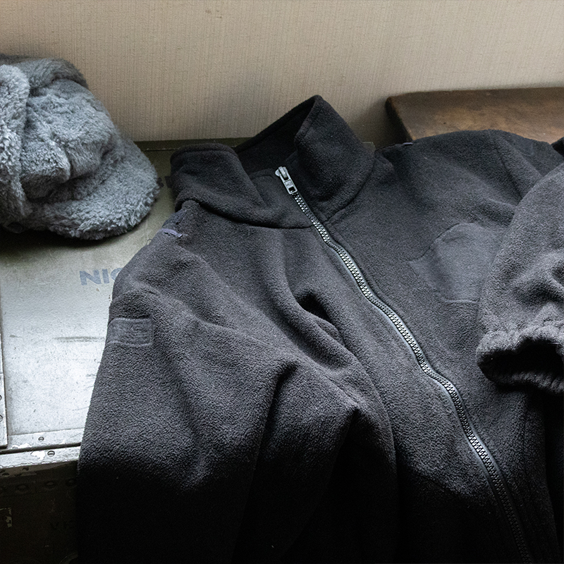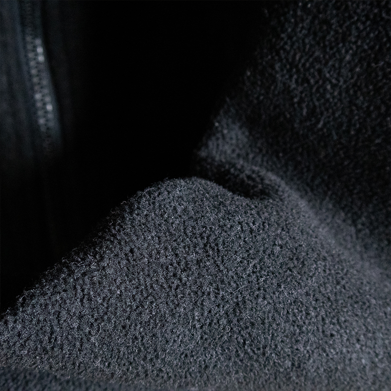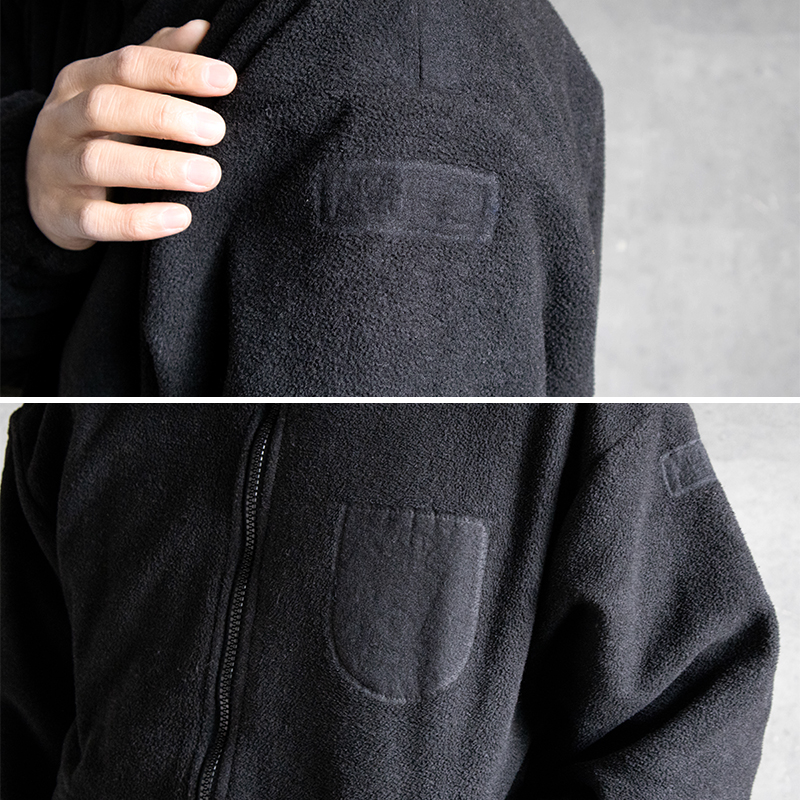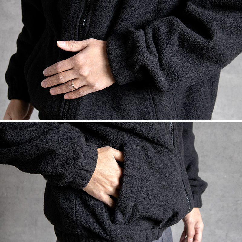 アウターとして着用されるため厚手で保温性の高いフリースとなっています。