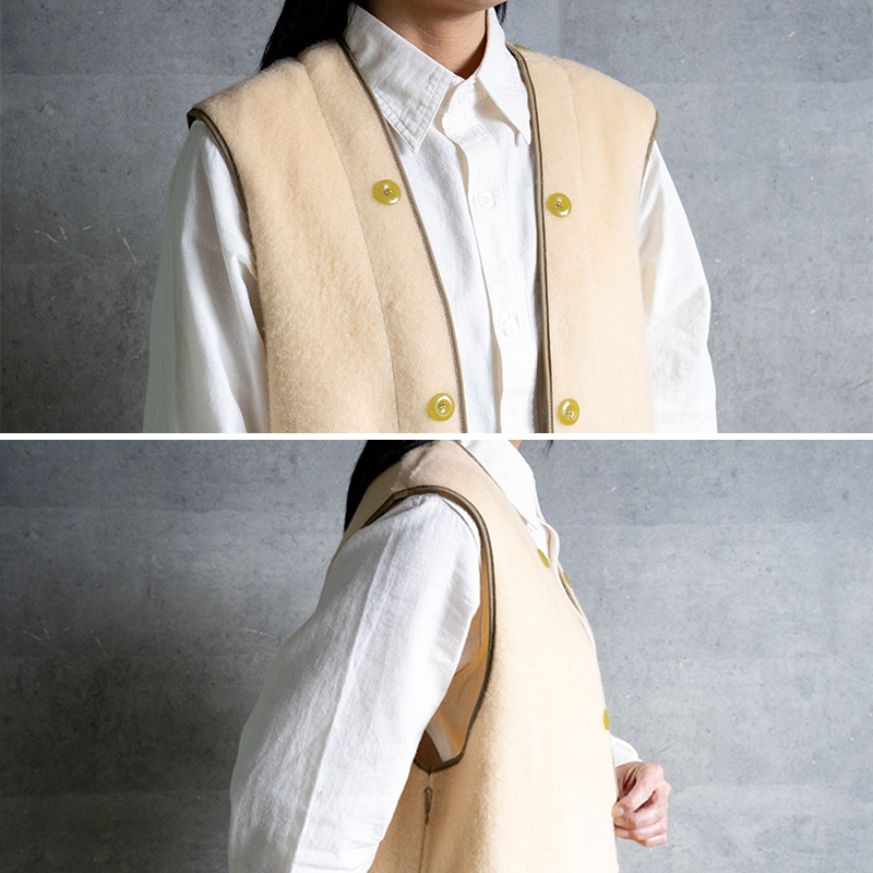 柔らかい肌触りの軽量な化繊ボアで、羽織としても重宝するアイテムです。