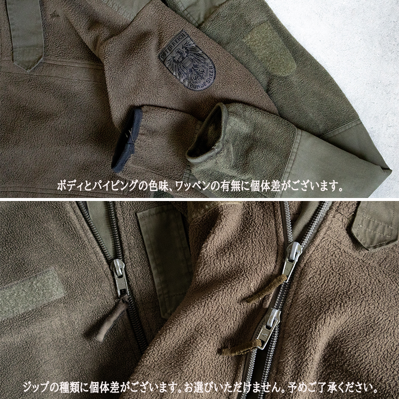 オーストリア軍実物のフリースジャケットです。 暖かく着心地の良いポリエステル素材のフリース。