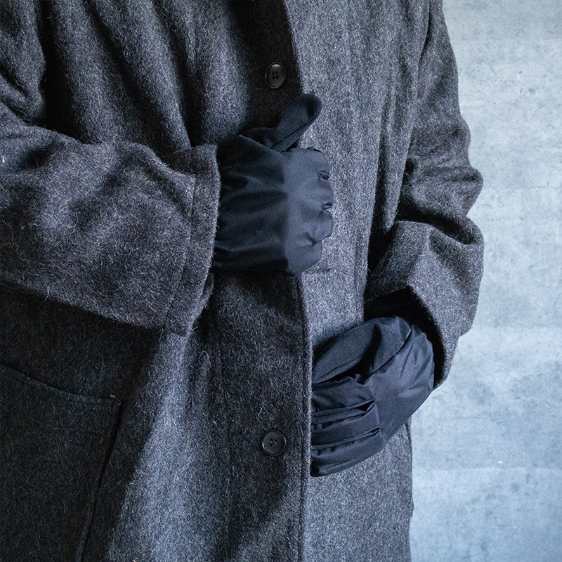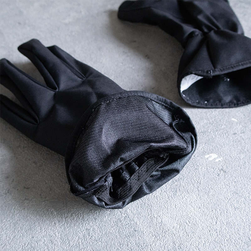生地を手首まで覆う長さにしており、ゴムで絞ることで隙間から入る冷気を防げるようにしています。