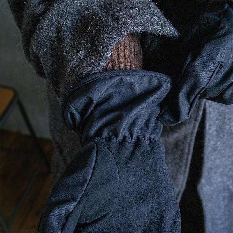 手首から先の手の平側はスウェード地の切り替えとなっています。