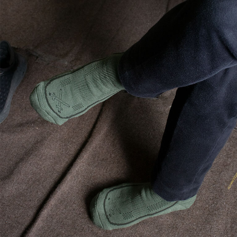 つま先とかかと部分の生地は厚みがあり、耐久性と保温性に優れています。