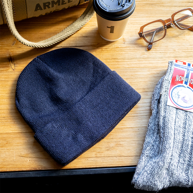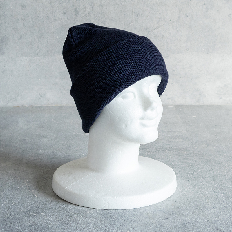 シンプルな折り返しタイプのニットキャップで男女問わず合わせやすいアイテムです。