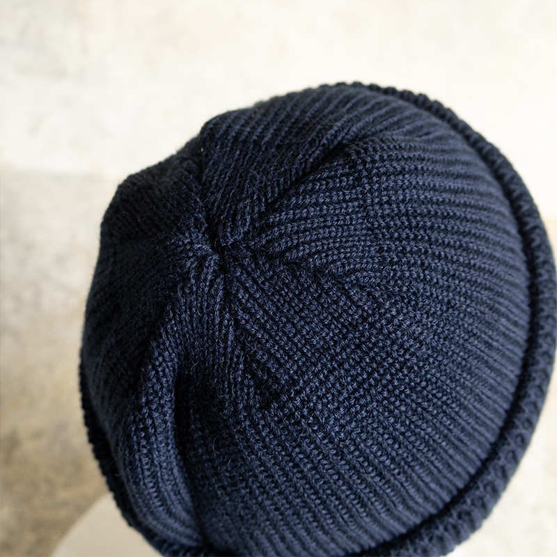 シンプルな折り返しタイプのニットキャップで男女問わず合わせやすいアイテムです。