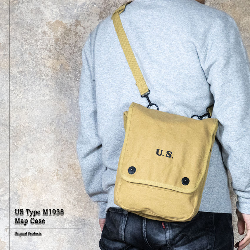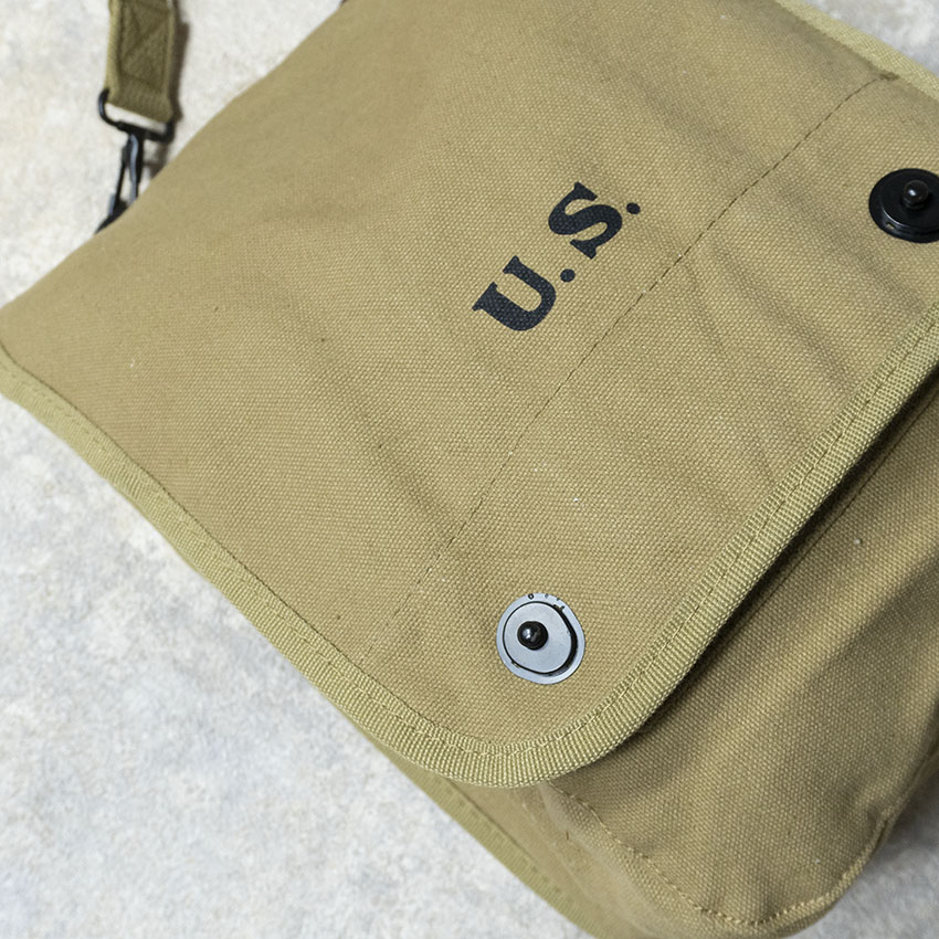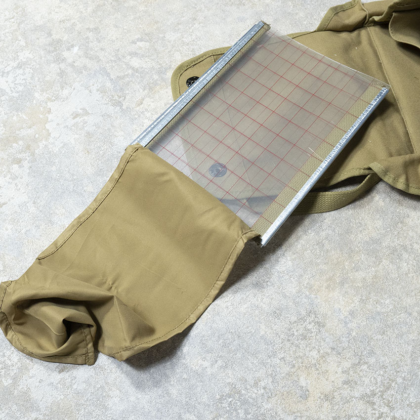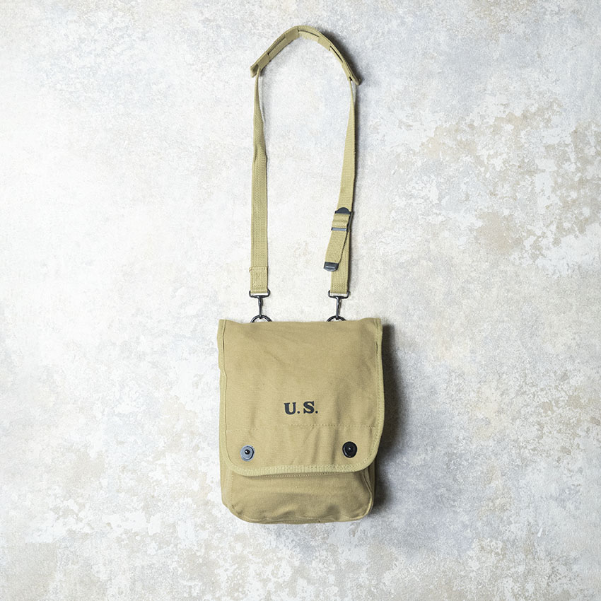 「M1938ディスパッチケースは、主に将校に支給され、前面のポケットには、メッセージブック・鉛筆・オイルペンシル・鉛筆削り・スケール・消しゴムを収め、3つあるコンパートメントには、地図・地図を挟むグリッド板・書類が収められました。」