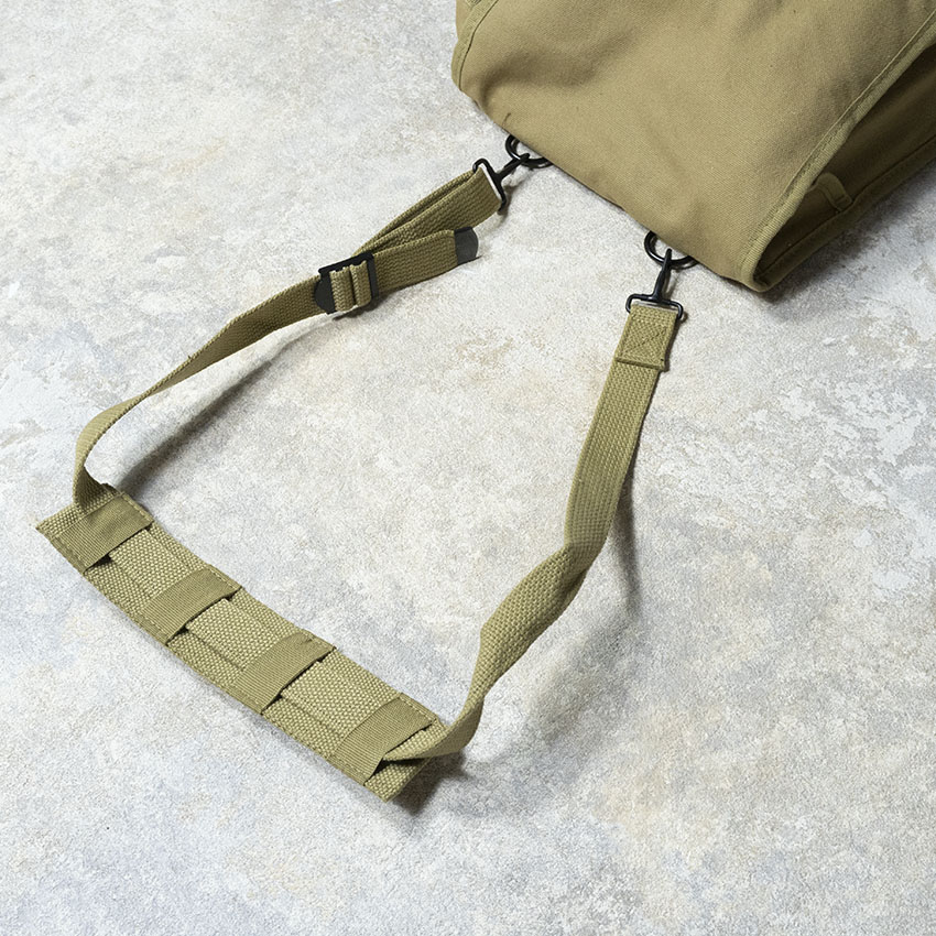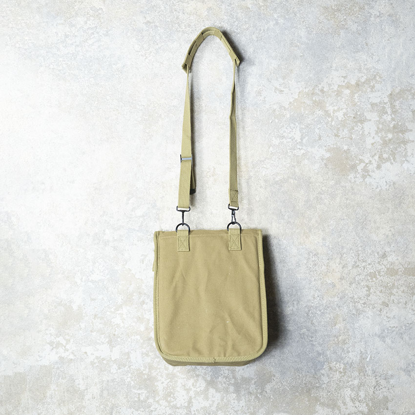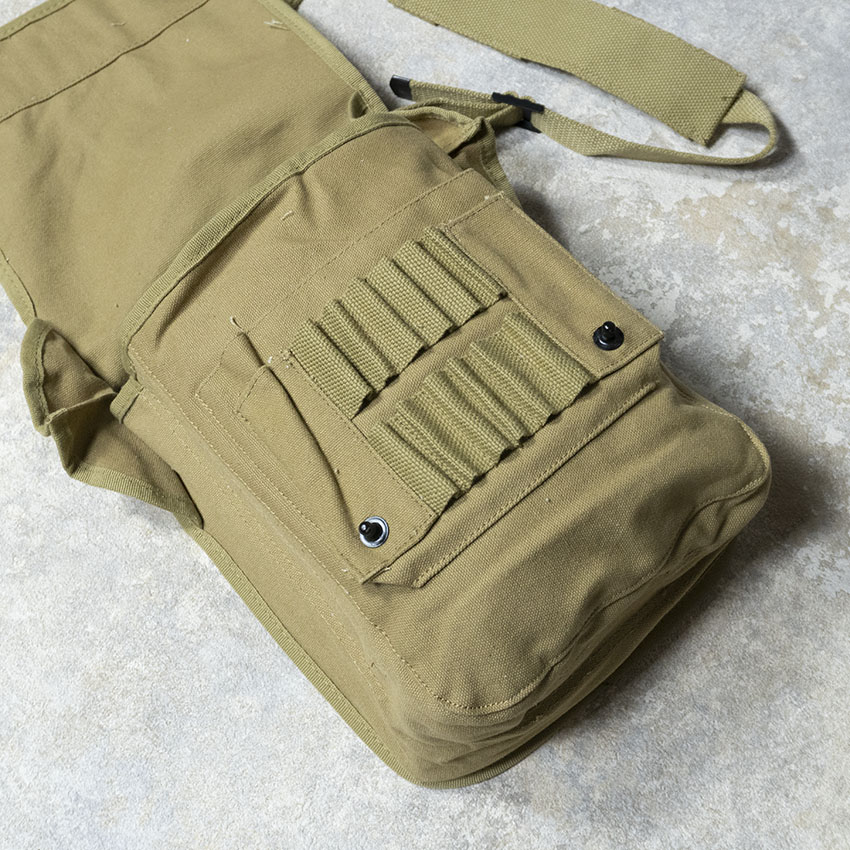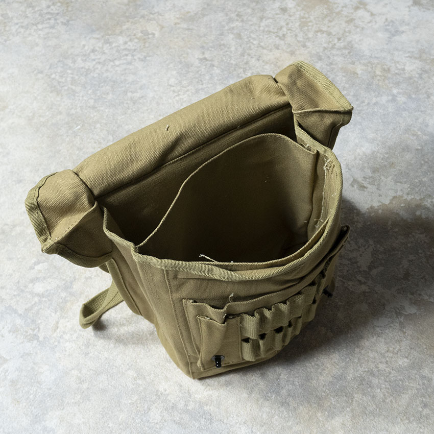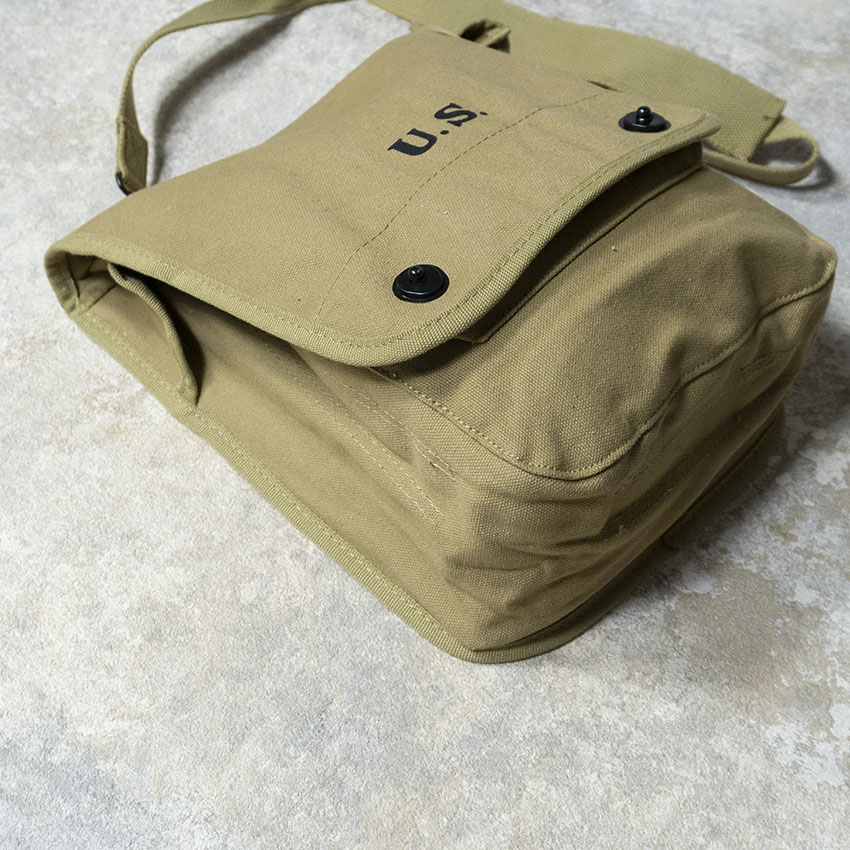 「M1938ディスパッチケースは、主に将校に支給され、前面のポケットには、メッセージブック・鉛筆・オイルペンシル・鉛筆削り・スケール・消しゴムを収め、3つあるコンパートメントには、地図・地図を挟むグリッド板・書類が収められました。」