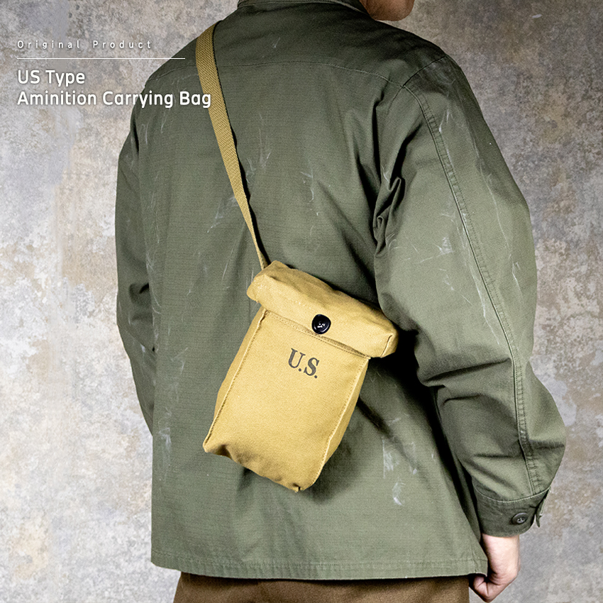 アムニッションキャリングバッグ(アミニッションキャリングバッグ)は、1942年に採用され、M1サブマシンガン用の30連マガジンを5本収納することができ、マガジン使用後は廃棄されました。