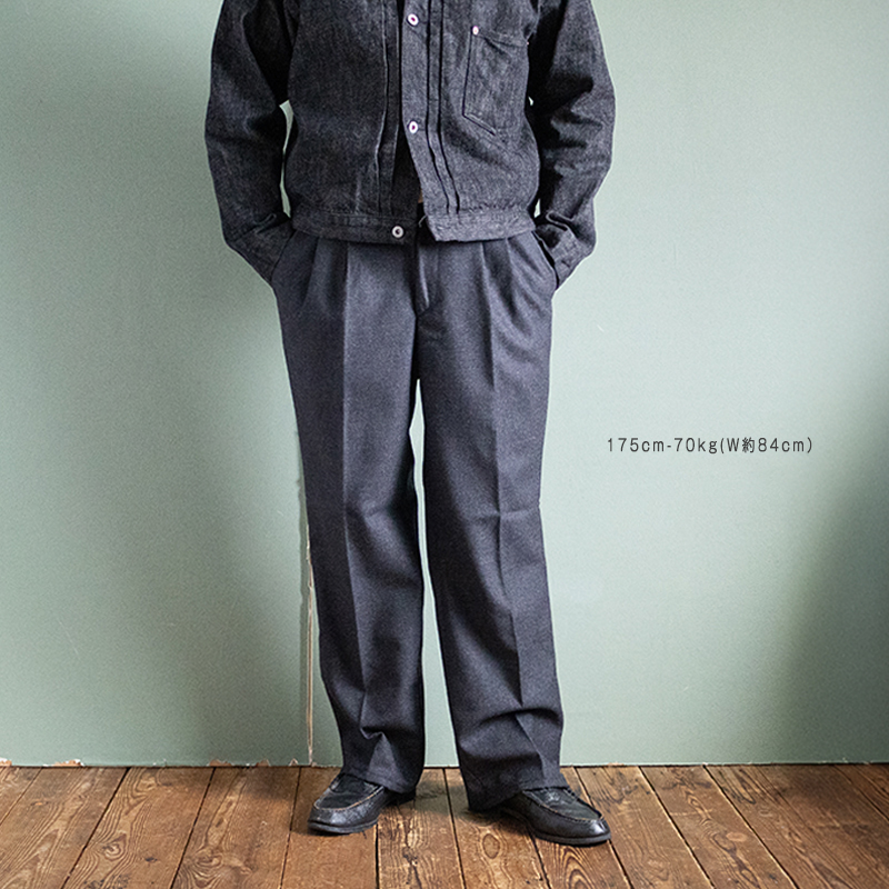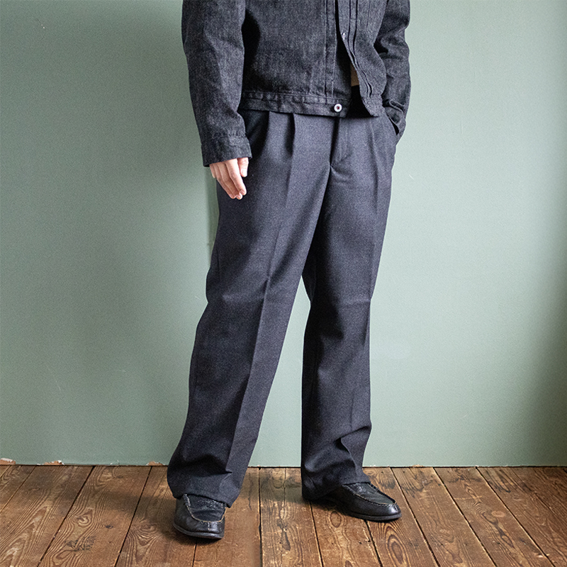 シルエットは中太、ワンタック入りの程よい太さで穿きやすくなっています。