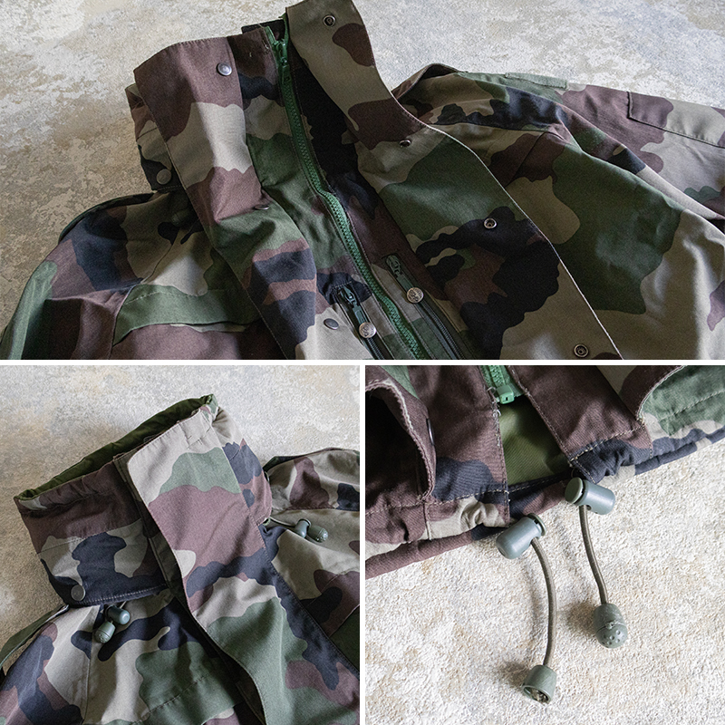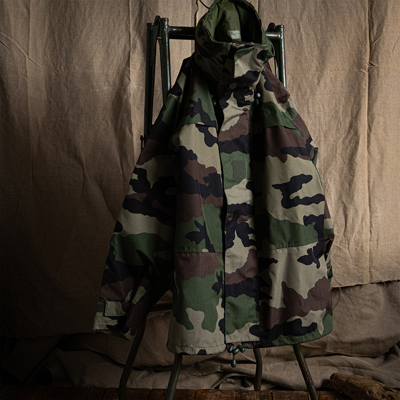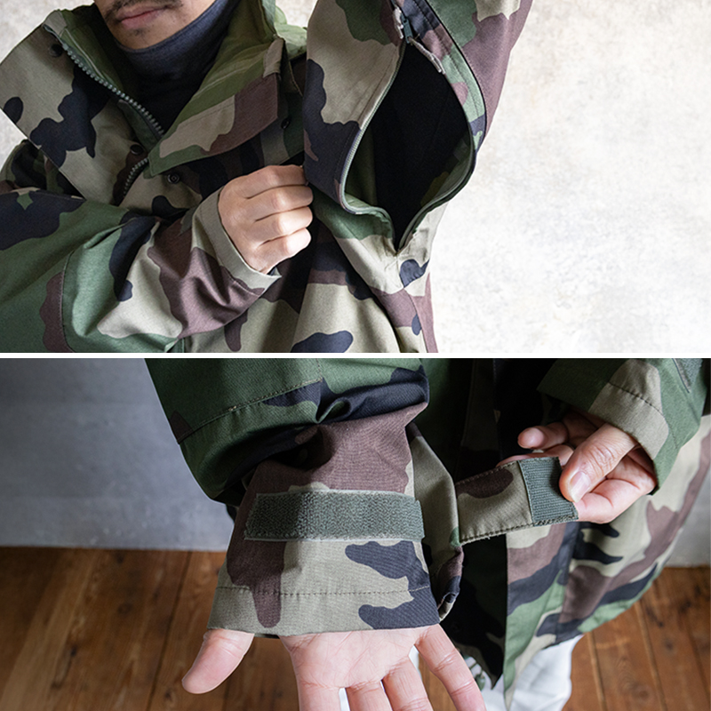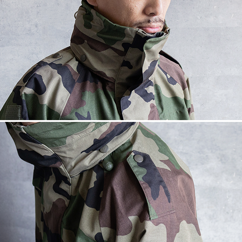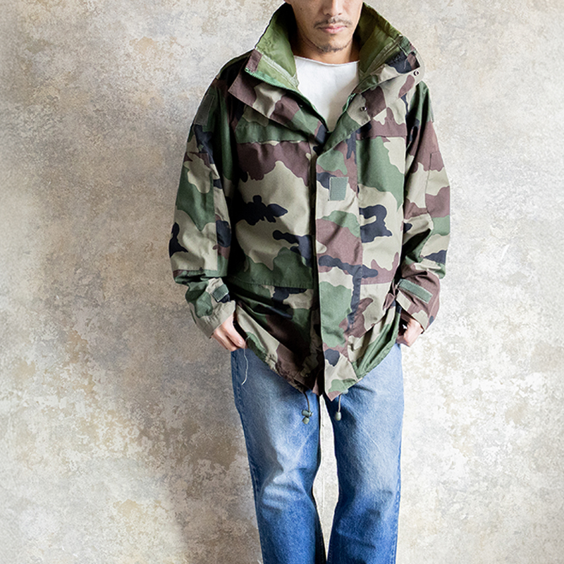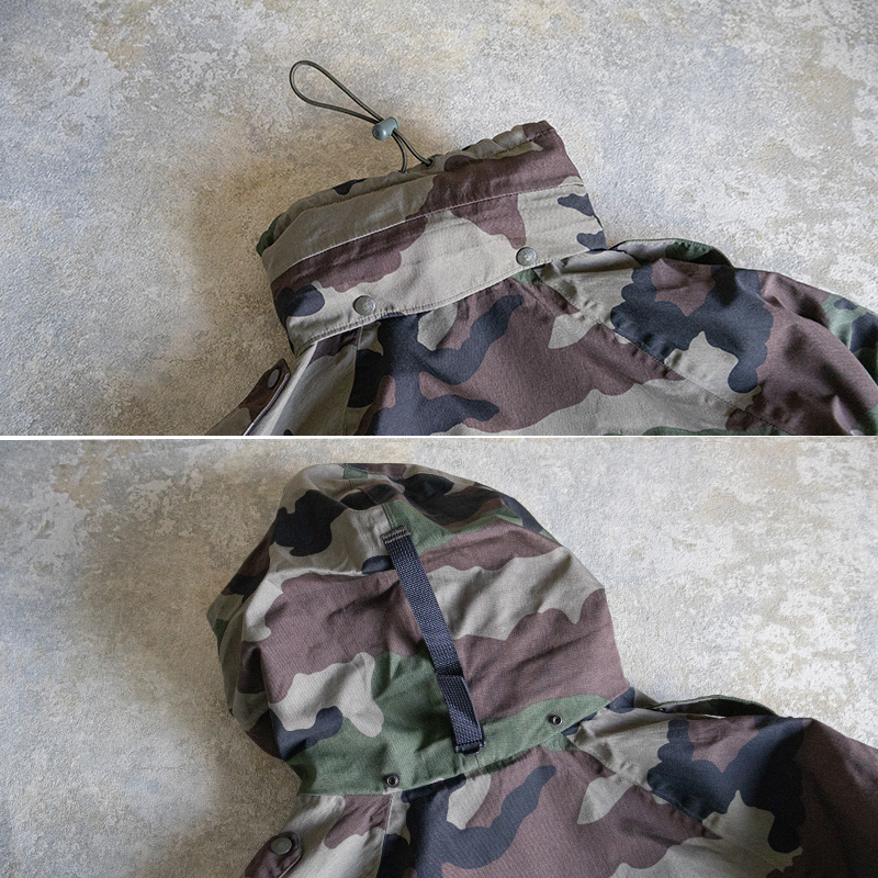 デザインもフランス軍特有のCCE迷彩でアウトドアなシーンからデイリーユースとして様々なスタイリングに落とし込みやすいアイテムです。