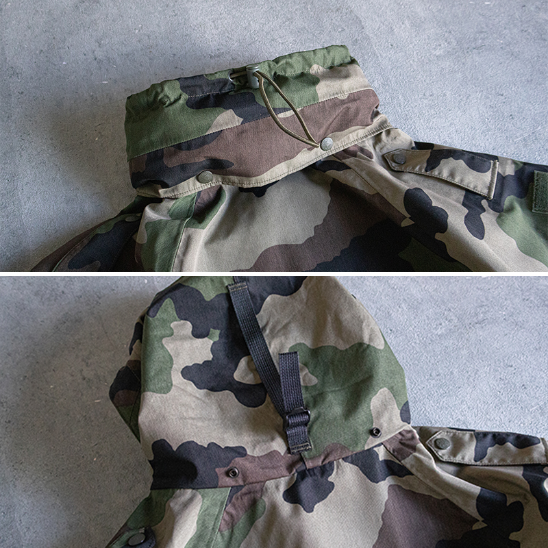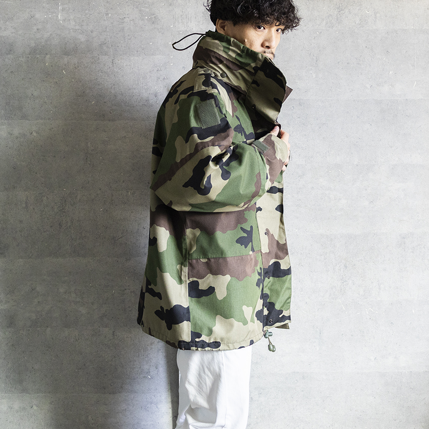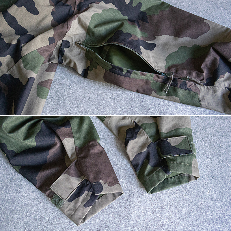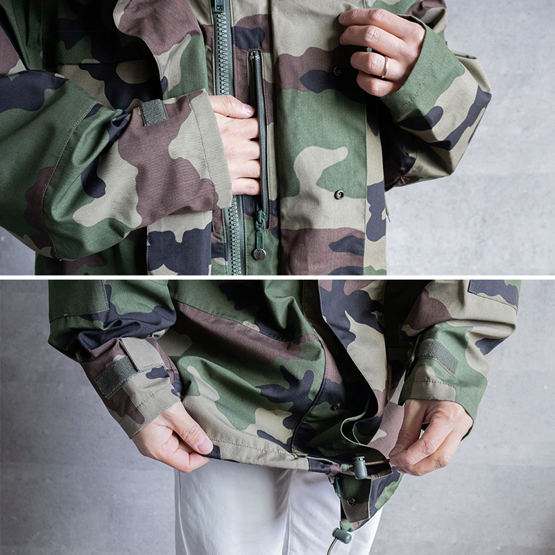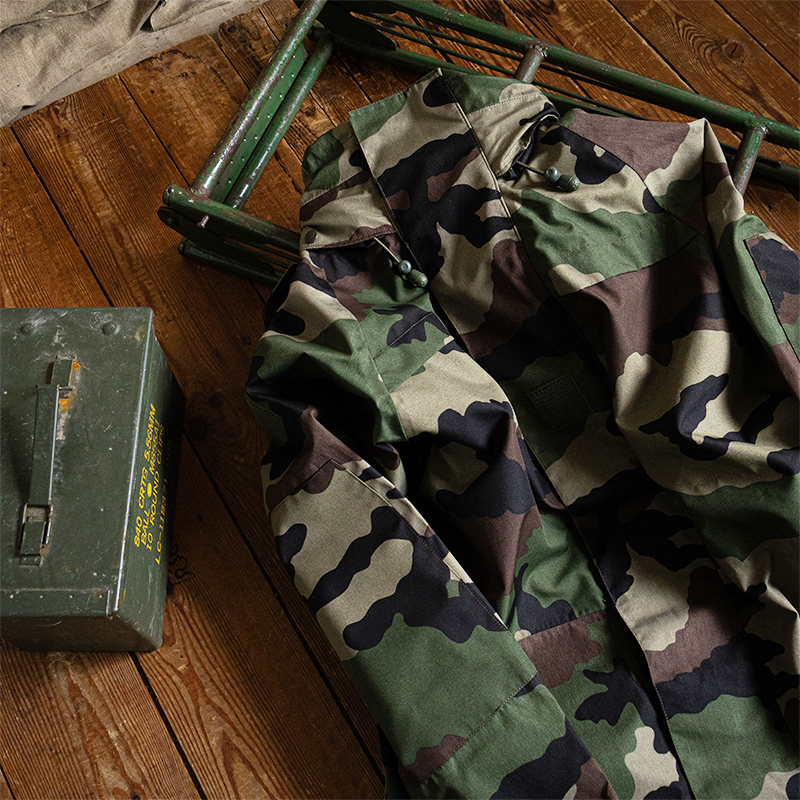 デザインもフランス軍特有のCCE迷彩で、アウトドアなシーンからデイリーユースとして様々なスタイリングに落とし込みやすいアイテムです。