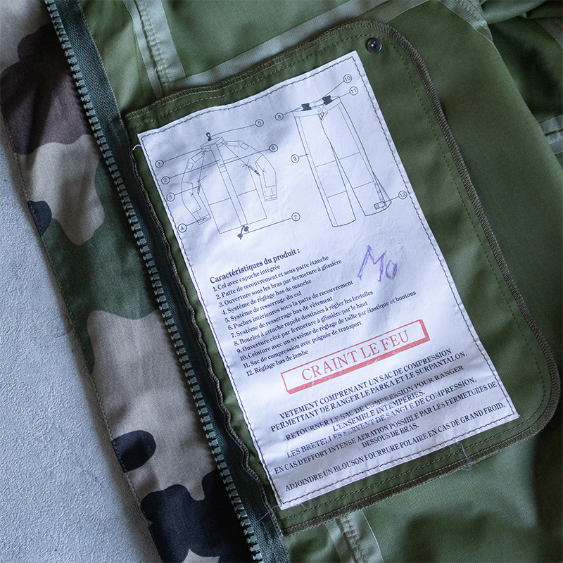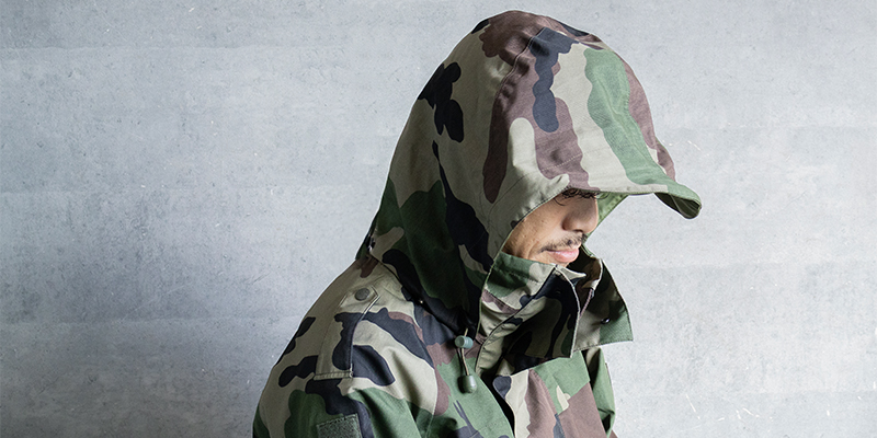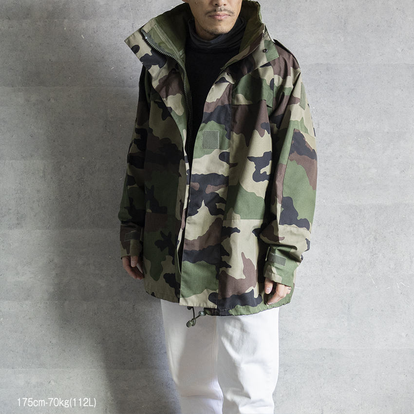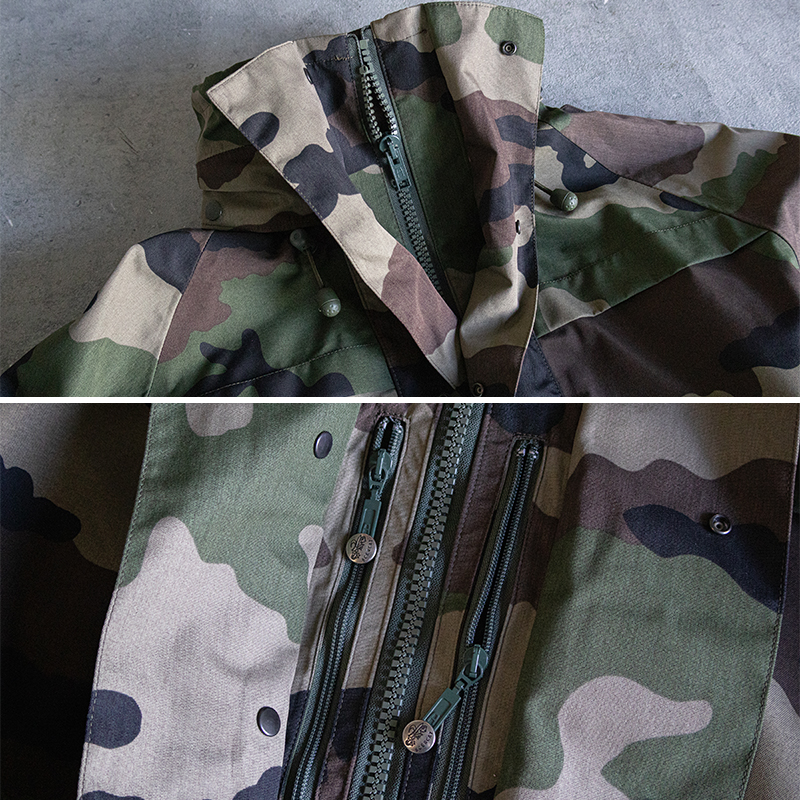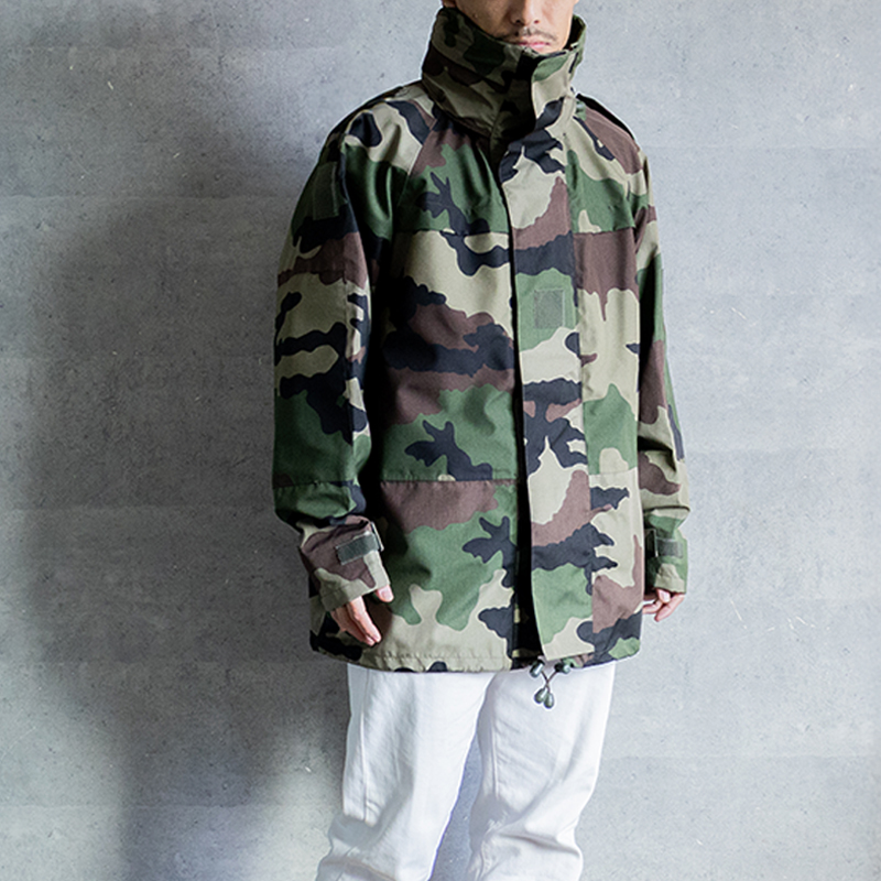 デザインもフランス軍特有のCCE迷彩で、アウトドアなシーンからデイリーユースとして様々なスタイリングに落とし込みやすいアイテムです。