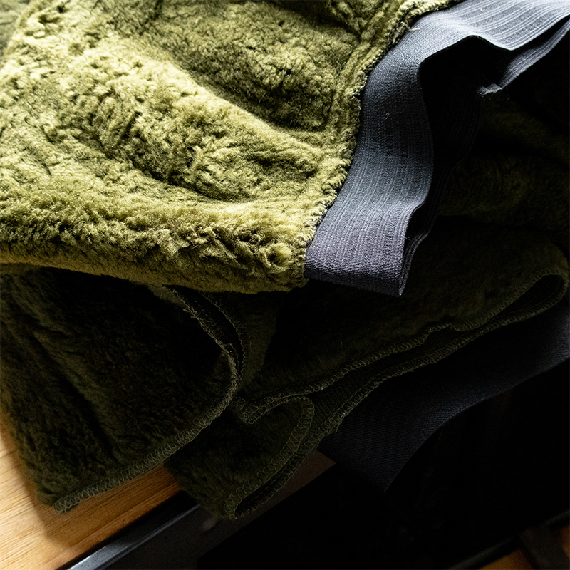 もこもことした生地感が個性的で、冬にピッタリなパンツです。
