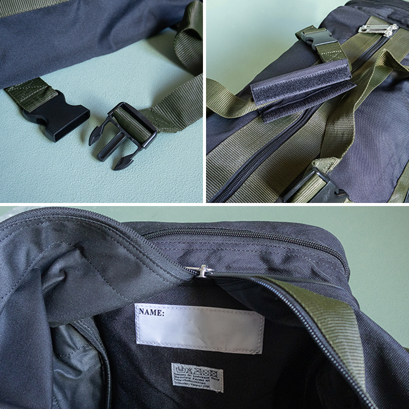 外面に3つのポケットを設けており、片側側面には幅約8cmの大きめポケット、反対側の側面とフロントにはマチなしのジップポケットが付いています。
