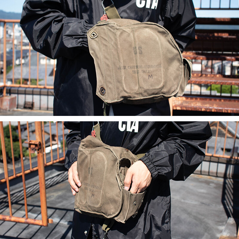 米軍実物のM17ガスマスクを携行するためのショルダーバッグです。