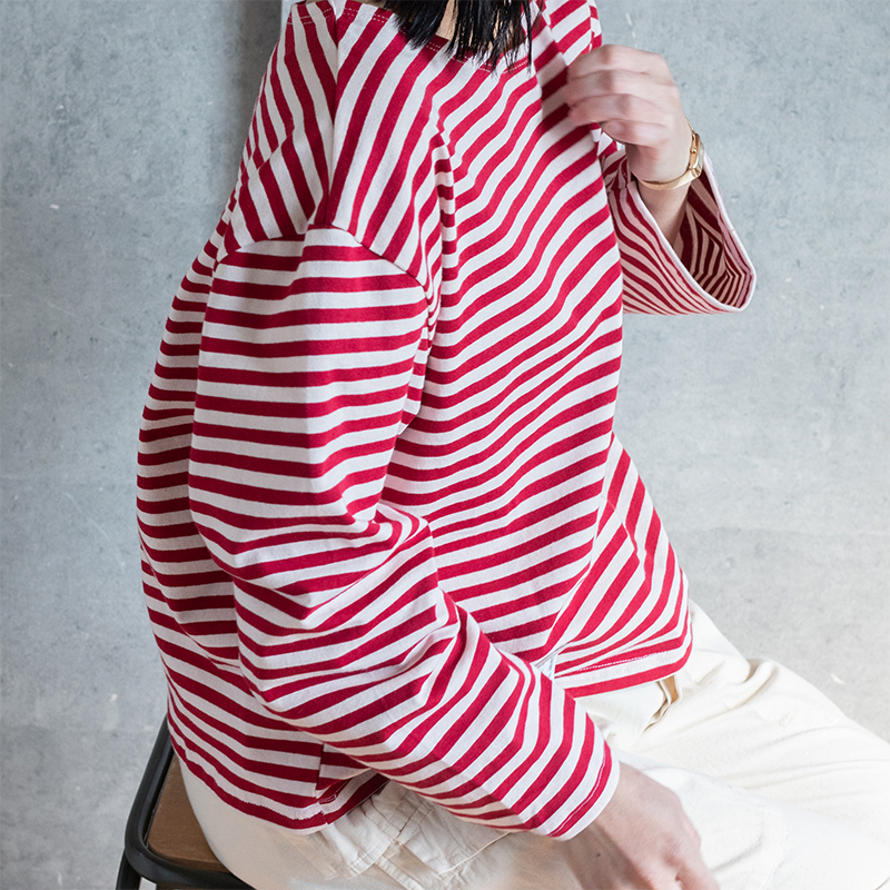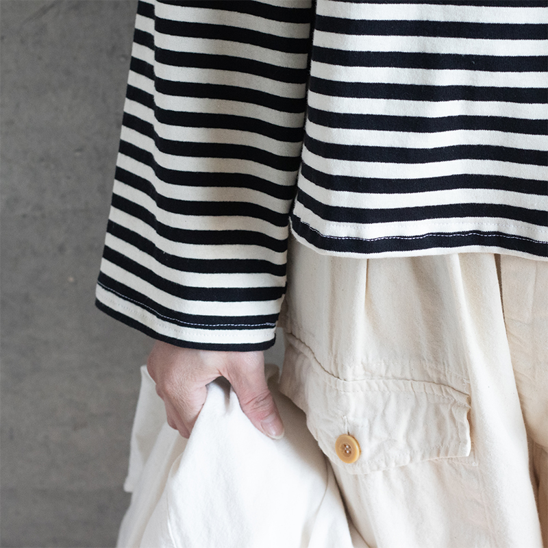 生地は肌触りの良いコットン地が使用され、様々なスタイルに取り入れられる万能なアイテムです。